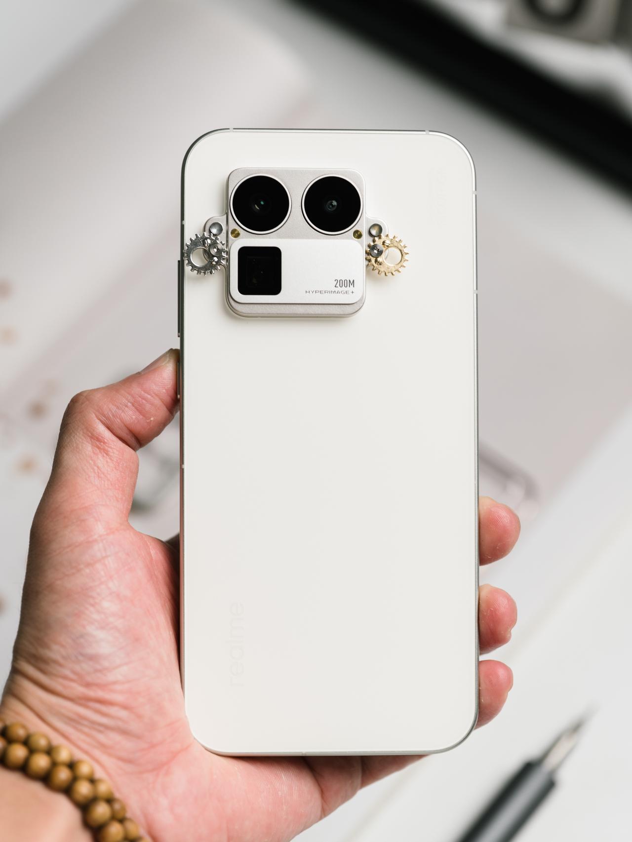 真我GT8 Pro这个外观设计,可玩空间真的很大。刚好看到手头有些小齿轮,甚至还能给它拧上当装饰。丑萌丑萌的,哈哈哈。 最近有很多小伙伴在整它的3D打印的盖板,整得我也想弄一台3D打印机了。