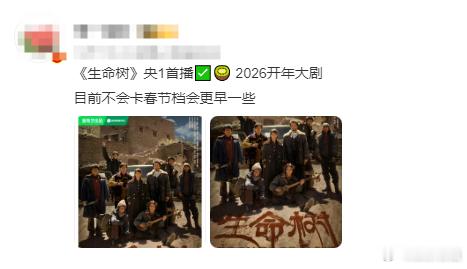 杨紫胡歌生命树2026开年大剧好多网友都在说杨紫、胡歌生命树2026开年大剧,央一联合几个卫视上星播出,已经迫不及待了啦!
