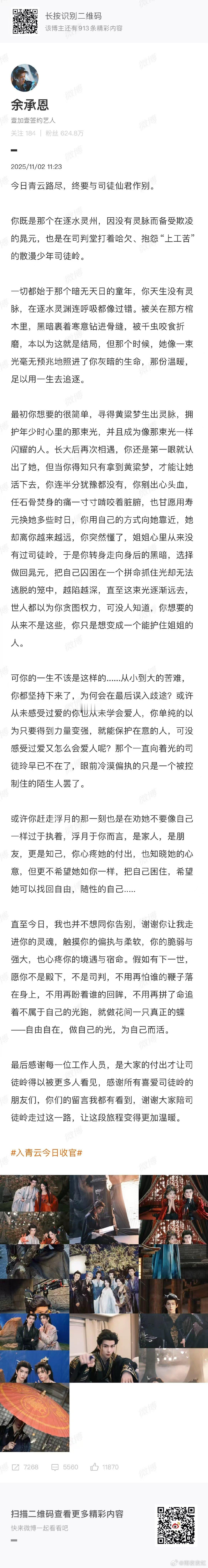 侯明昊入青云收官发文 刚重读“以后的每一天,都是‘今日、甚好’”,?心智的剧总能藏着温柔,纪伯宰与明意的双向奔赴治愈了所有颠沛,N刷都不腻!