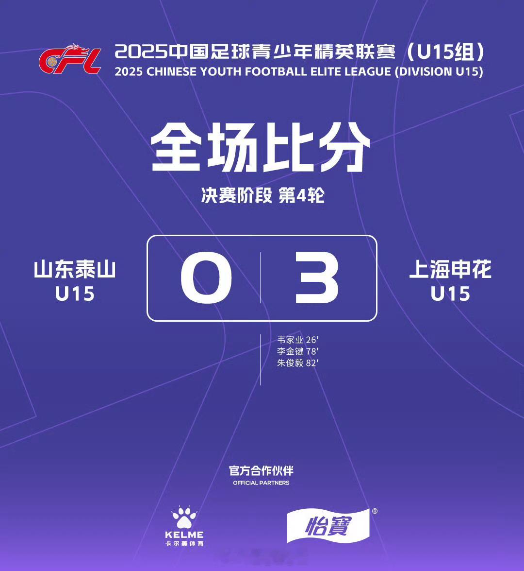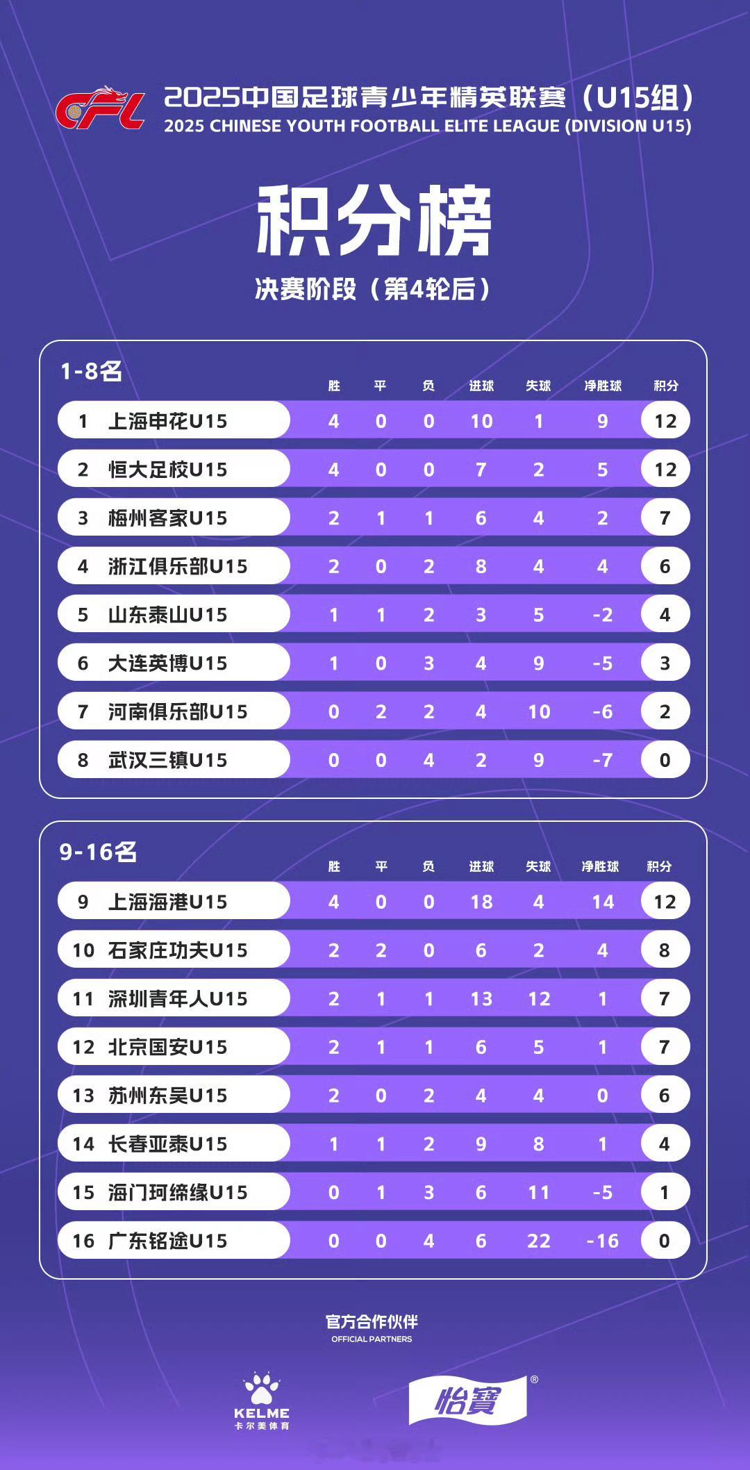 2025中国足球青少年精英联赛(U15组),决赛阶段第4轮赛果以及积分榜情况。自由橙[超话]山东泰山[超话]