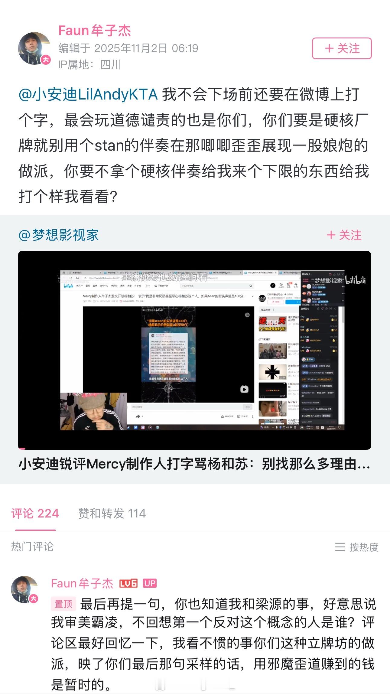 牟子杰开怼活死人后和小安迪隔空互怼!小安迪表示: