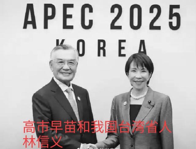 10月31日,中日双方在韩国举行了会谈,在会上日本新任首相高市早苗表示承诺,日本将坚持1972年中日联合声明的立场。但是这个日本新任首相竟然在中日会谈的第二天,在自己的社交媒体账号上发布信息,高调晒出她和我国台湾省的林信义会面的照片,还公然妄称林信义为所谓的“总统府资政”。