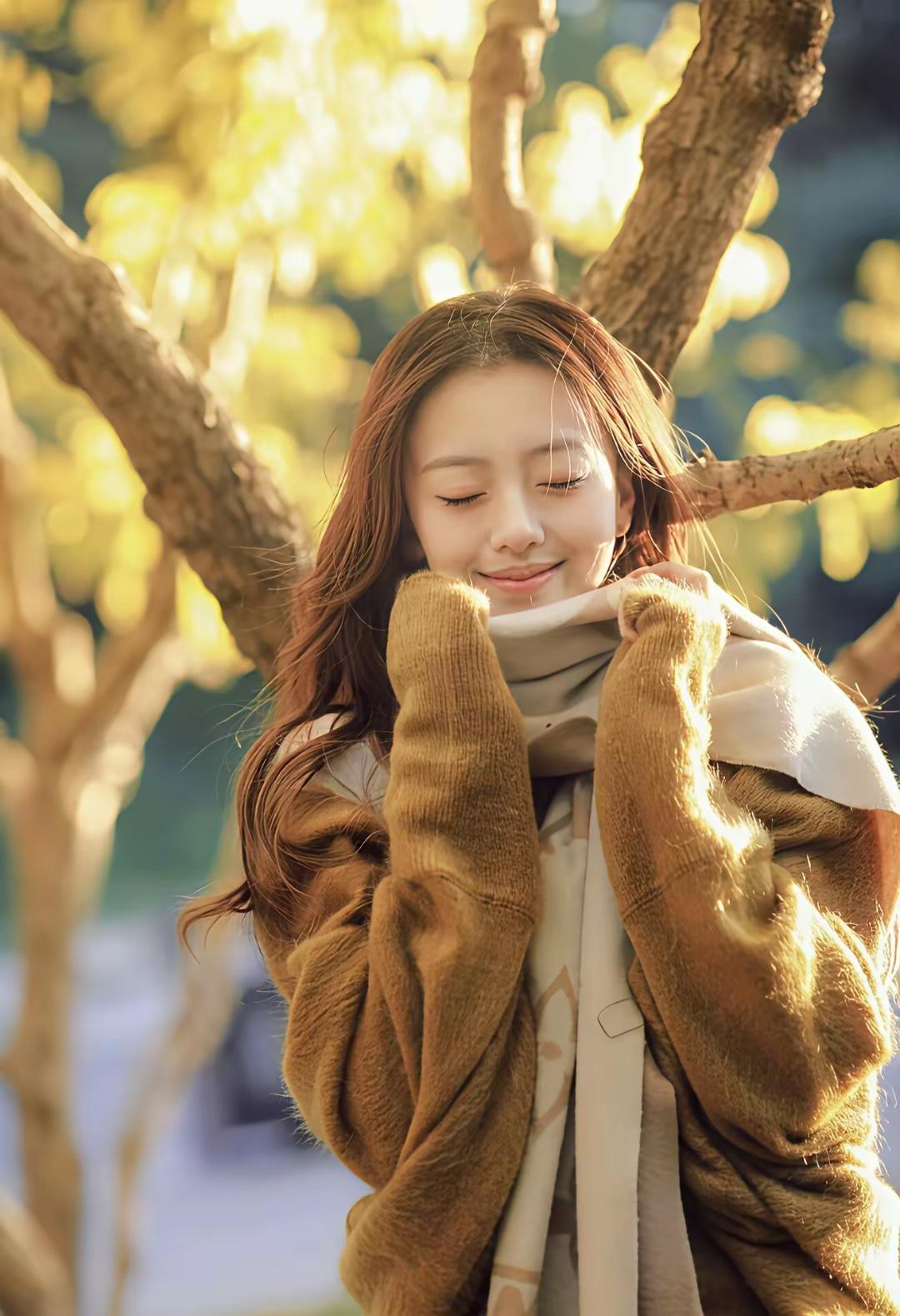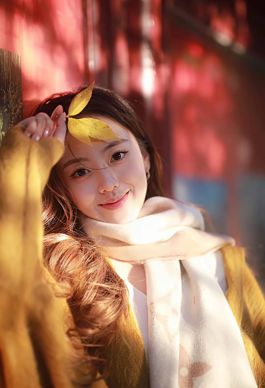 秋日漫步,暖阳洒落,温柔时光 落落大方的美女