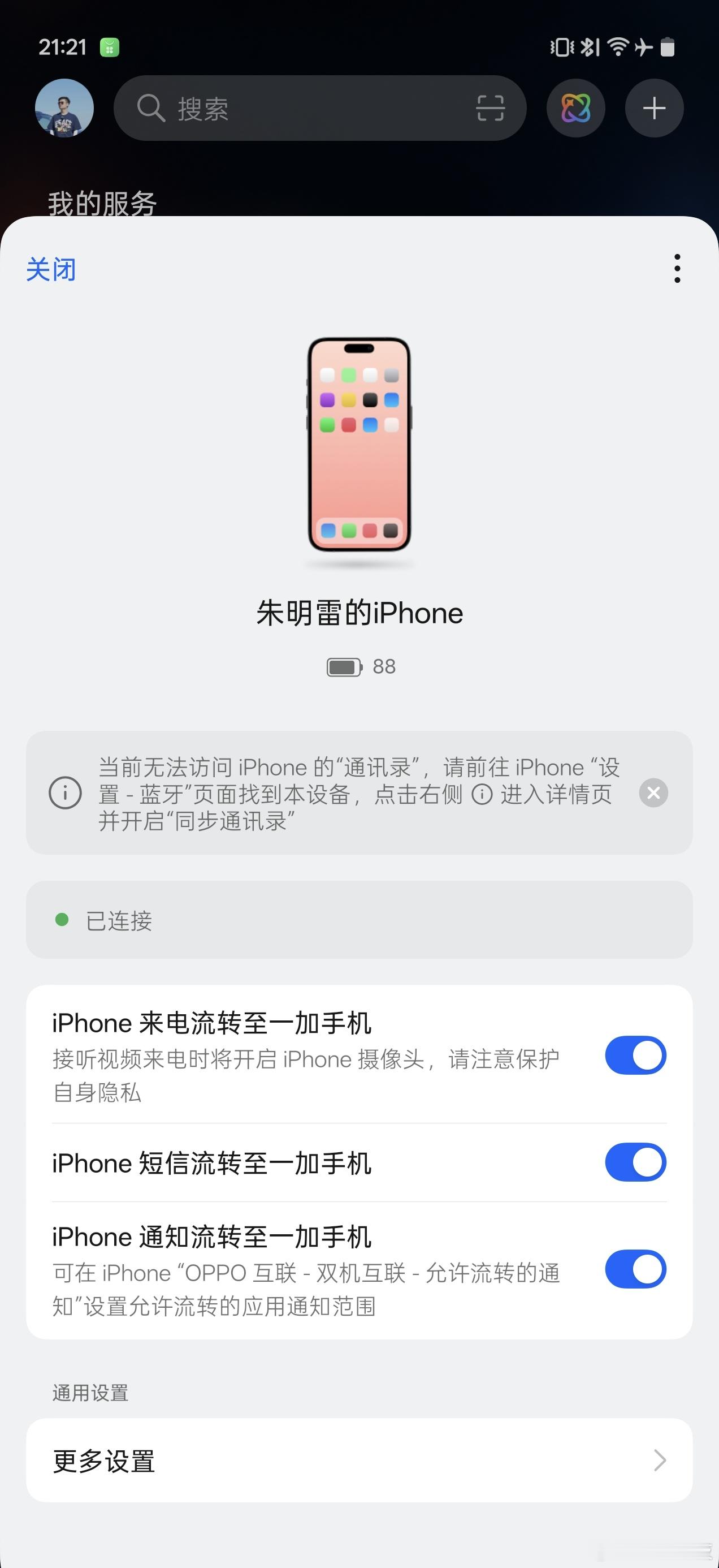 哦嚯,一加15终于支持Apple Watch配对了,来电、通知、服务、健康数据都实时显示互通,完美匹配,很巴适!再配合iPhone与Mac的互联,ColorOS 16真有两把刷子,双机党狂喜啊!![good]