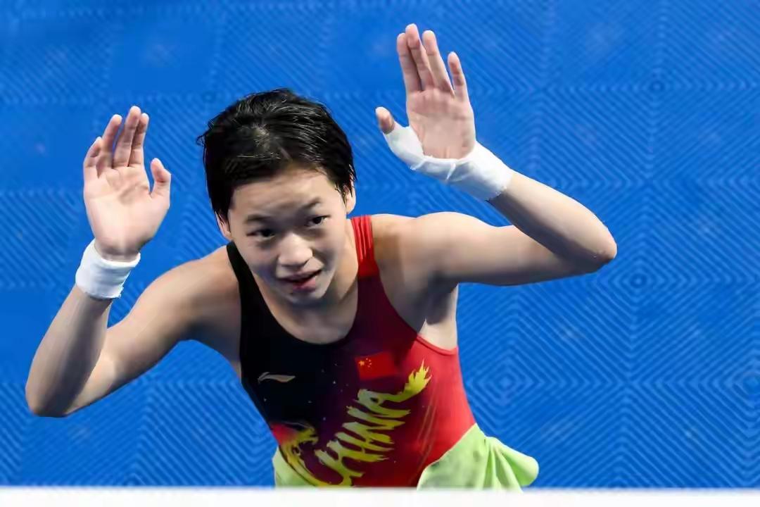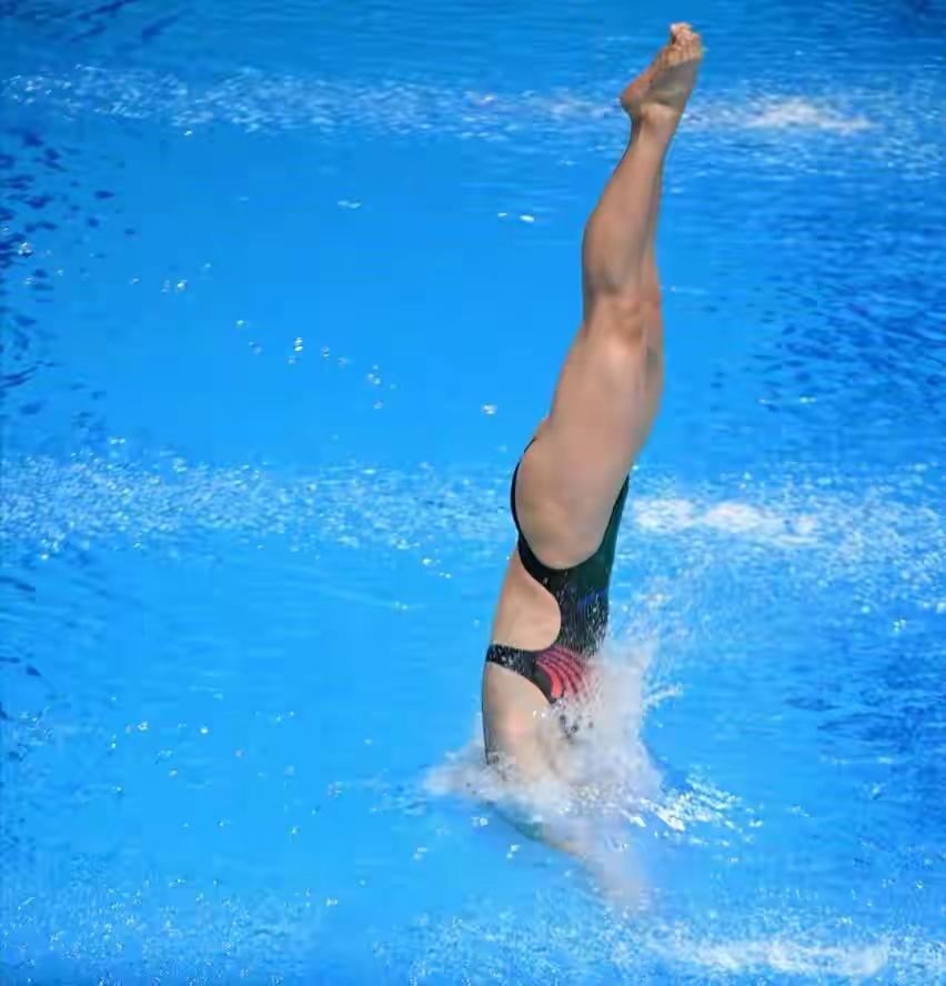 粤将归来绽碧池,家门口前展英姿。 腾翻入水惊鸿影,女团蝉联续传奇。