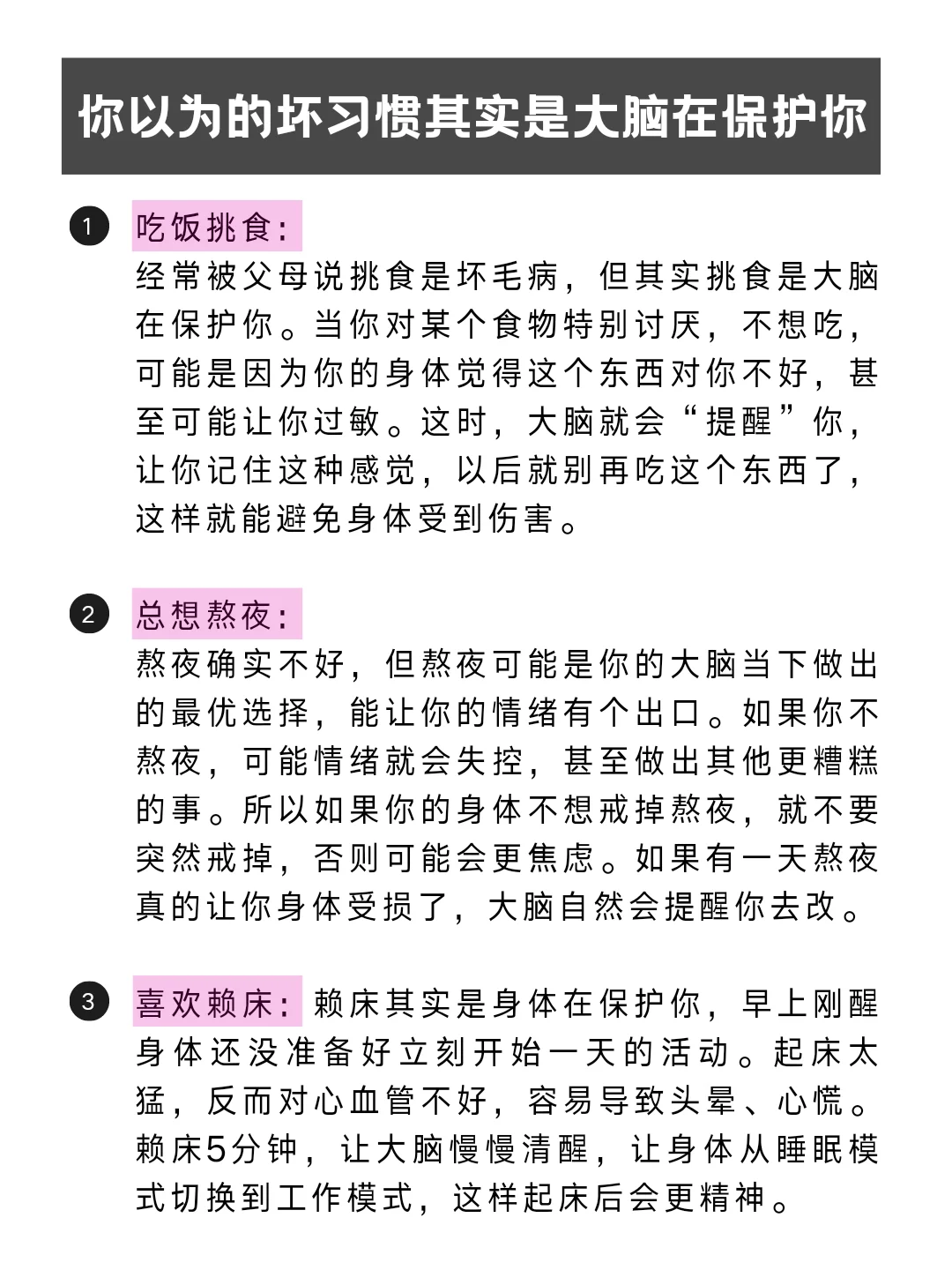有些你以为的坏习惯,可能是你的大脑当下做出的最优选择,能让你的情绪有个出口,人的身体是很奇妙的,它在默默地用自己方式保护你~