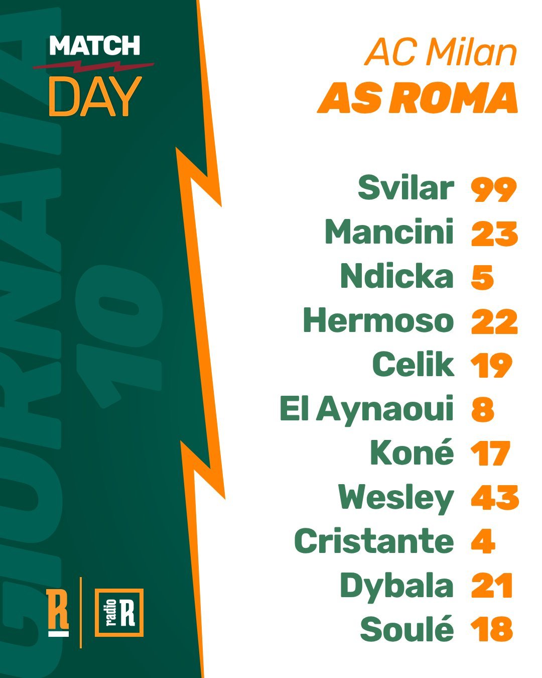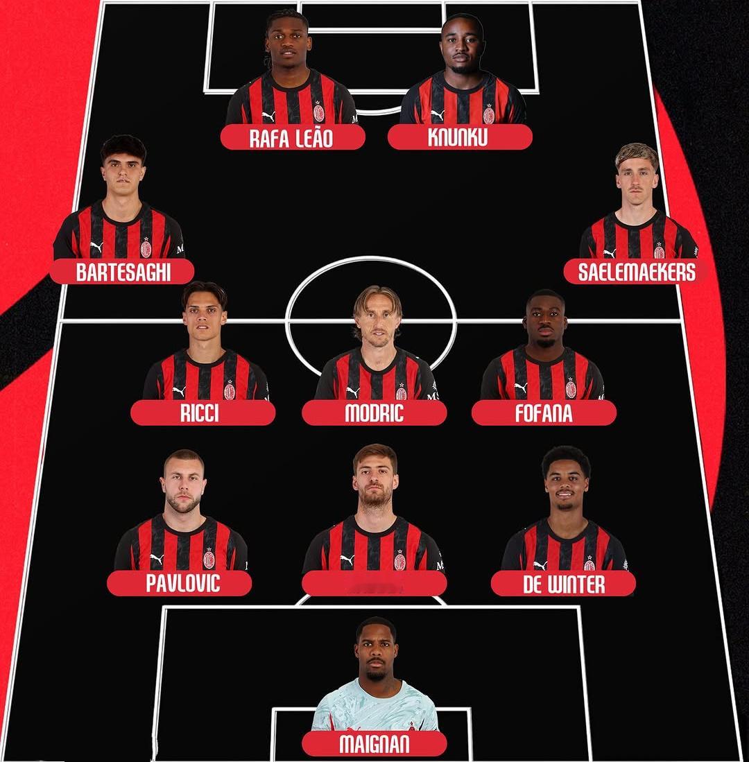 【首发阵容】2025-26赛季意甲联赛第十轮-🔴⚫️米兰主场对阵罗马队(352);队长:迈尼昂🇫🇷.