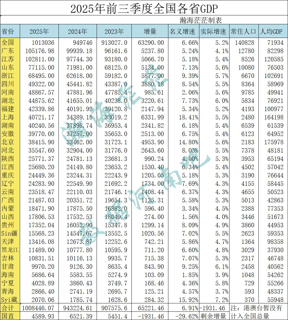 2025年第三节度各省生产总值和河南省各地市生产总值。