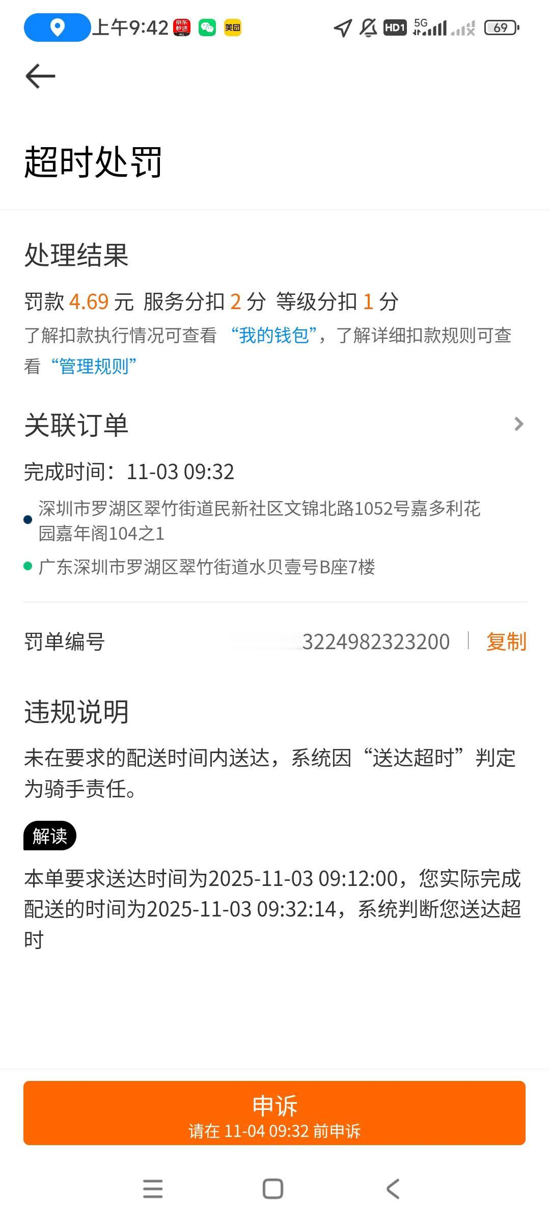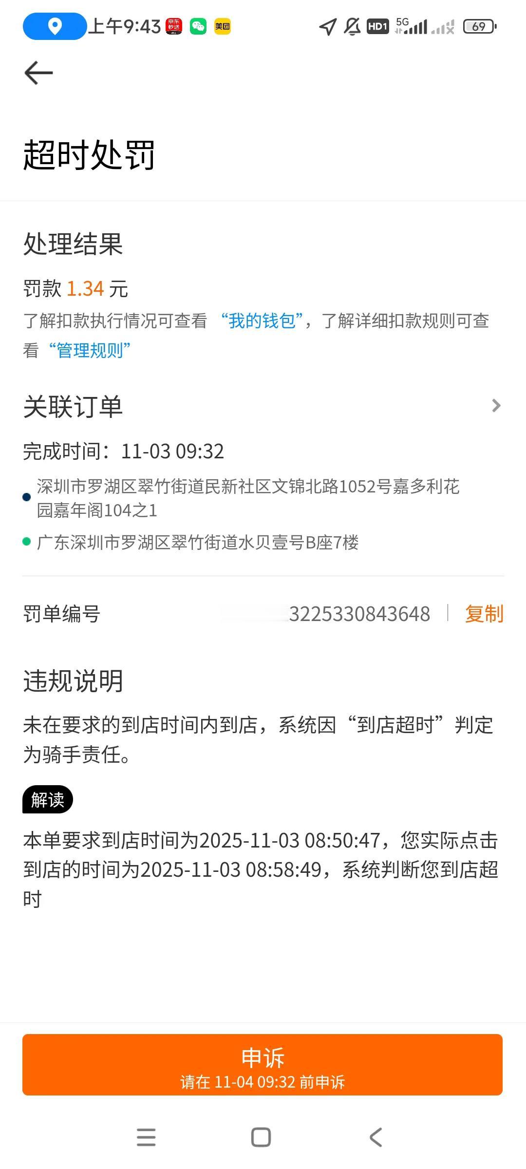 太贪心不行啊,一下子接了4单,有一单要爬楼梯,另外二单是等电梯的,耗时间,所以最后一单运费6.7元,因为超时,扣了6元,最后到手0.9元,,[捂脸][捂脸] 觉得平台扣钱,有点狠,扣个一半也行,怎么扣了百分之九十五,留下七毛钱了,,[捂脸][捂脸]
