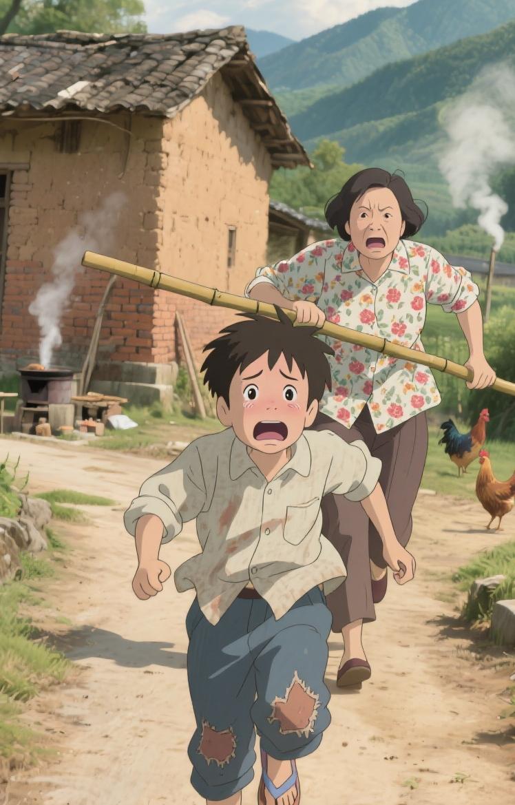 就如图所示,记忆中如果做错了事妈妈拿着棍子追着我。这却是我觉得最幸福的事,谁都