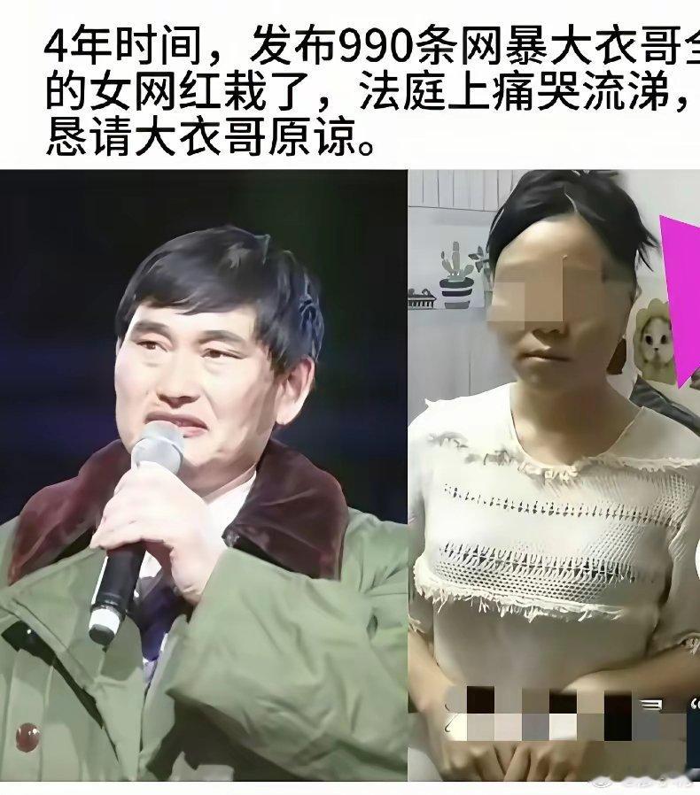 大衣哥告网暴者胜诉被告已羁押尽管女网红哭得稀里哗啦,当庭求饶,但大衣哥没有心软,终于送她进去踩缝纫机了,判了6+4个月,这就对了!网络不是法外之地,骂大衣哥的人,都是自己没本事,还见不得别人好的人。这女的通过四年的不懈努力,终于把自己送进去了!也把自己的三代人套上了枷锁,教训深刻!热点观点