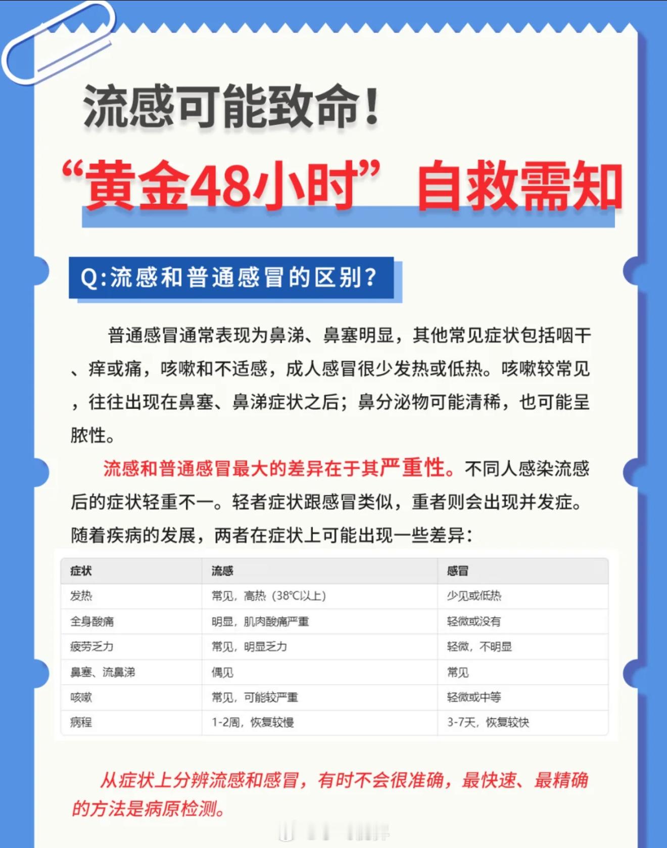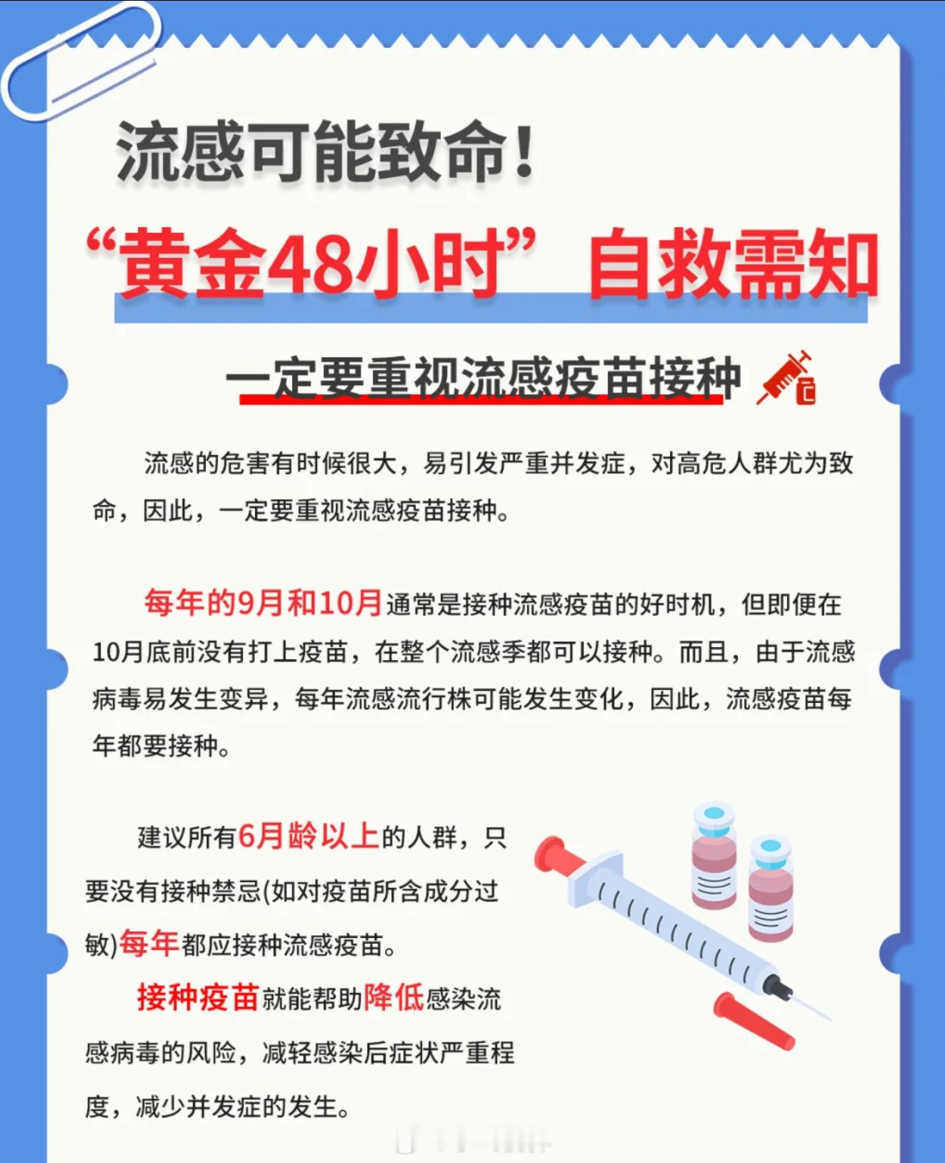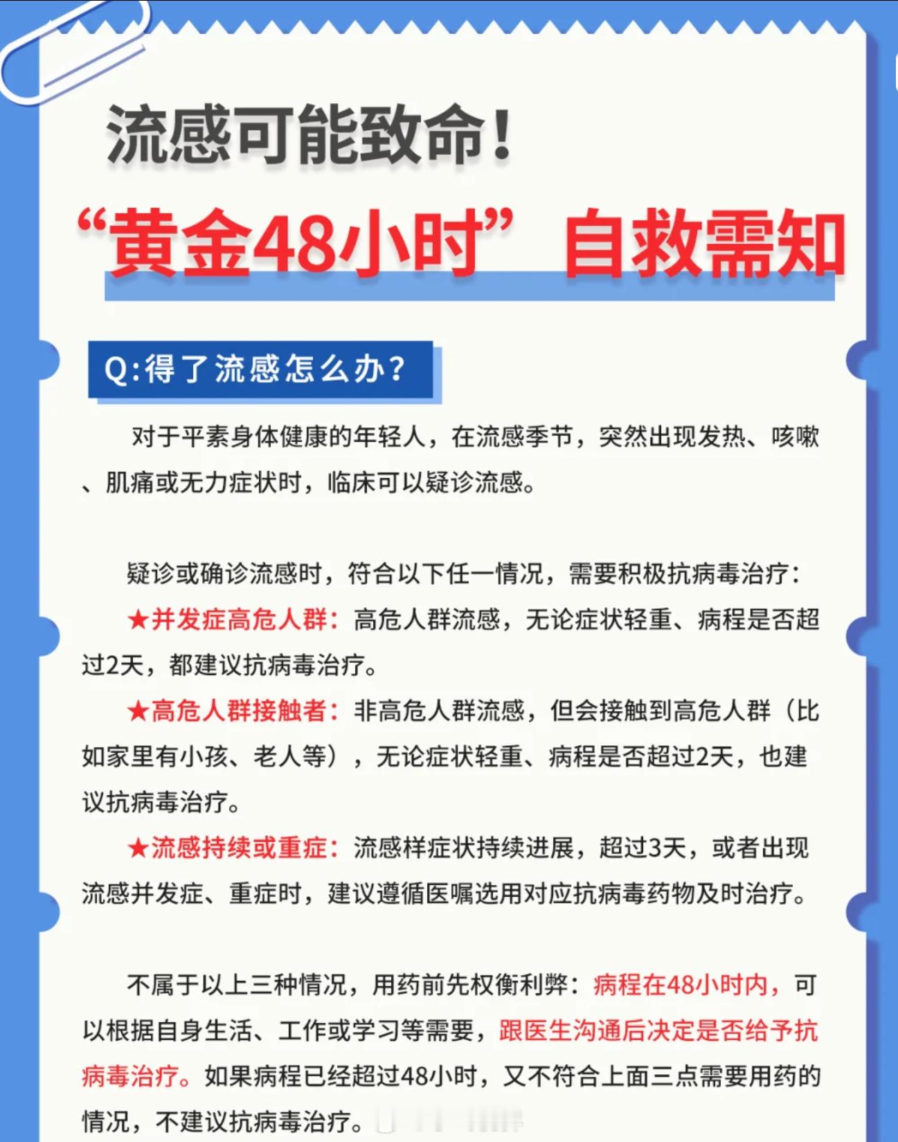 我特别想提醒准备出门的朋友:流感可不是普通感冒。它能在飞机上让你1个人传染11个,发病时39度高烧浑身剧痛。 流感发病的48小时是自救黄金时间 ——如果能在出现症状两天内用对抗病毒药,不仅能快速退烧,还能把传染家人的风险降低三分之一。 健康素养提升V计划流感自救