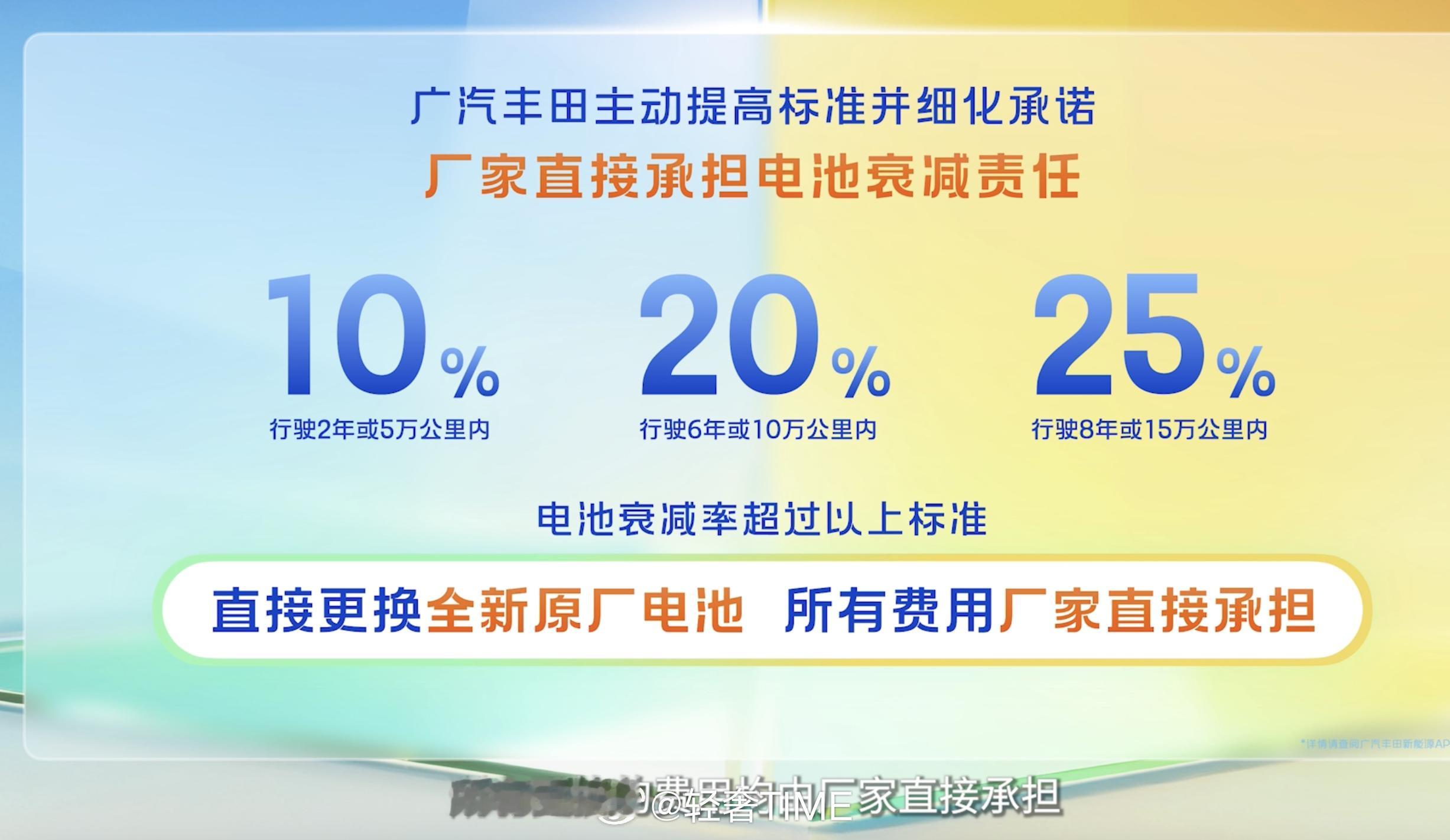 不仅如此,广汽丰田在电池衰减质保上直接“超纲”了,把标准拉到了行业更高水平,直接为电池续航和衰减兜底。确实从根本上消除了对电池寿命的焦虑。