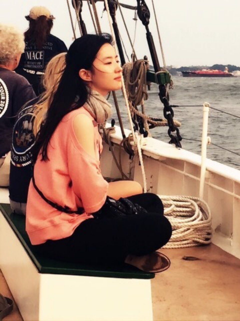 刘亦菲把死亡玫粉穿出了定制款的感觉,这种颜色普通人穿上分分钟黑三度,她居然能穿出