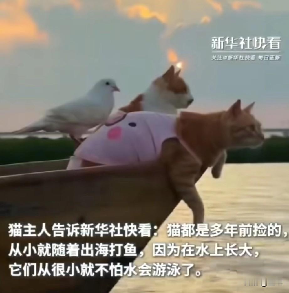 快来看,会出海打鱼的猫,你们见过吗,太可爱了![爱慕] 最近广东一位渔民晒出的视频,把全国网友都萌翻了——自家养的奶牛猫,不仅敢跟着木船出海,还主动跳进船里的浅滩“捞鱼”,粉粉的小猪图案衣服浸了水,毛都贴在身上,却叼着小鱼甩得水花四溅,活像个刚下班急着干饭的打工人。 这哪是猫,是渔船“编外员工”啊! 视频里的木船,是珠三角常见的浅海作业船——船板间留着浅浅的活水层,渔民会把刚捕的小鱼暂养在里面。 而这只叫“猪咪”的奶牛猫,打小跟着船长大,据说2个月大第一次上船,被浪吓得躲进渔筐,现在敢站在船沿看潮水。 起初猫儿们也只是凑到船板边扒拉鱼,现在一看见鱼群动,直接“扎猛子”叼鱼,动作比网兜还快。 每天“上班”的报酬,是渔民特意留的3条新鲜银鱼,吃完就蜷在船舷晒太阳,主打一个“不加班”,真的好惬意啊! 带定位晒今日生活猫捕鱼 广东 我的今日状态:😭伤心难过 我这里的天气:🌧下雨