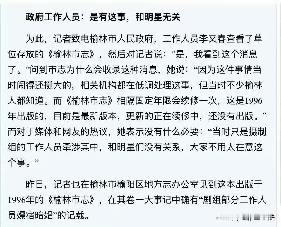 王家卫《东邪西毒》剧组曾经因为集体嫖娼被抓16人,事发在1993年,当地表示确有其事,但16人中没有明星,全是普通工作人员,所以大家不要太在意这事。 这真是墙倒众人推啊,都33年前的事了还翻出来,虽然王家卫因为口不择言已经塌房了,但是实话实说这事不能硬扯到他身上,一个香港剧组来内地拍戏,绝大部分工作人员都是在内地临时找的,王家卫能约束得了他们收工后的生活?