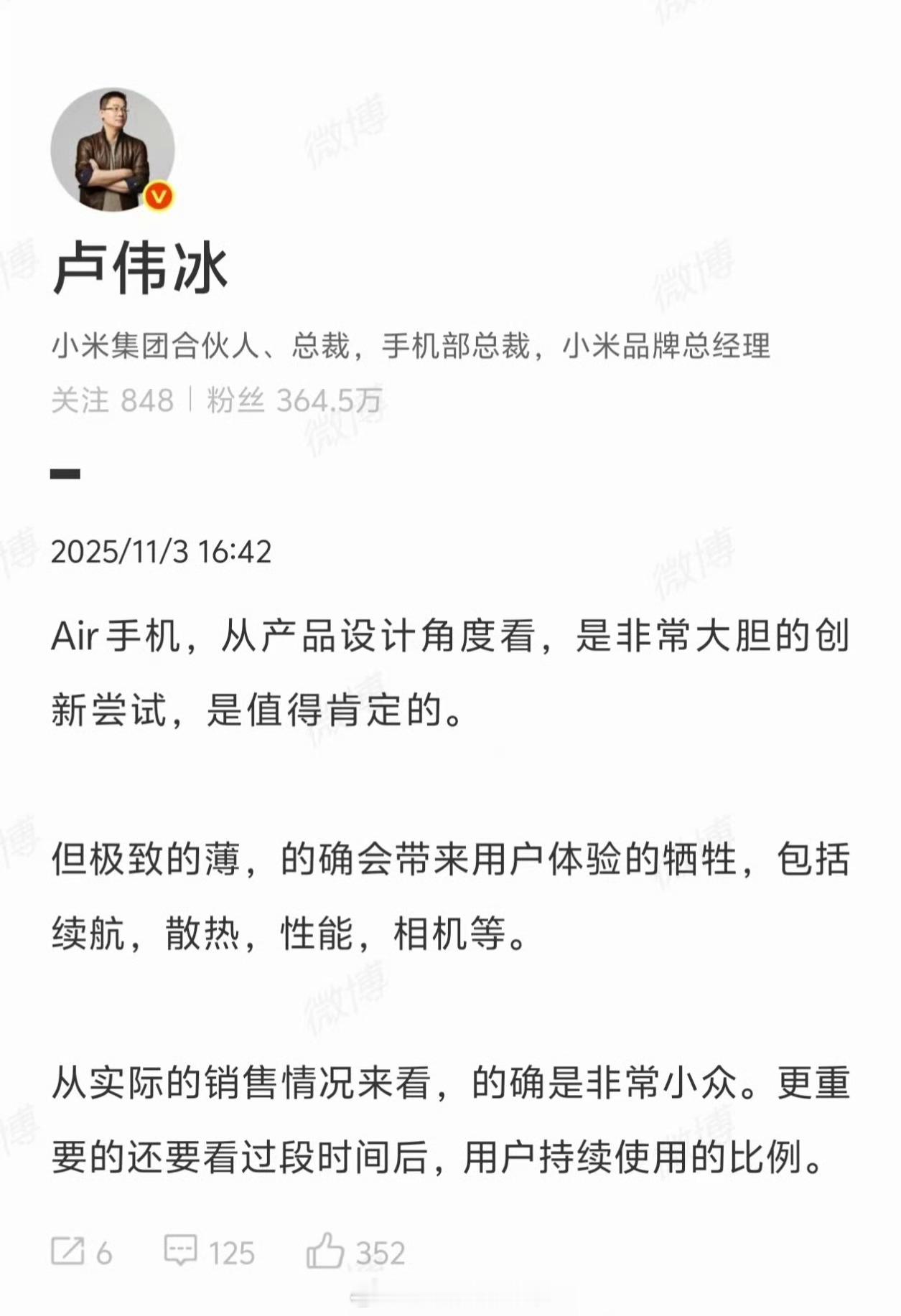 卢伟冰回应手机变薄 还需要抽一位产品经理去非洲锻炼吗?[捂嘴哭][捂嘴哭]
