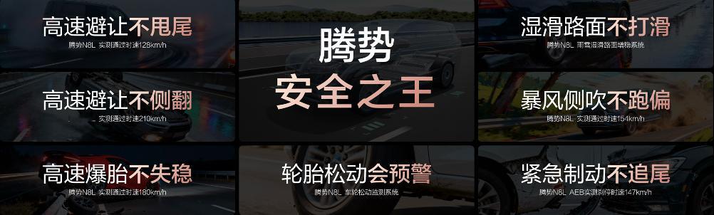 在大家最关心的安全层面,腾势N8L的表现很扎实。车身用了“金刚铁骨”设计,关键区域采用2000MPa材质,即便面对25吨大货车侧翻压顶也能稳定支撑;前后防撞梁是全铝材质,前防撞梁覆盖率80%、后防撞梁73%,还搭配了插混CTB电池车身一体化技术和9安全气囊,整个被动安全配置都是按C-NCAP五星、C-IASI优秀标准打造的。
