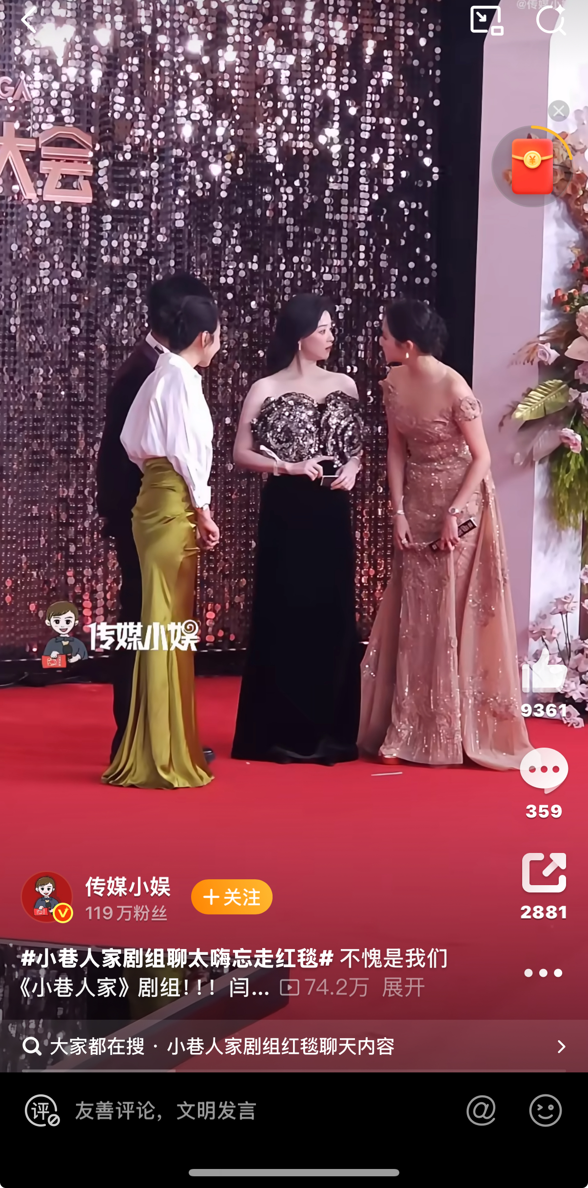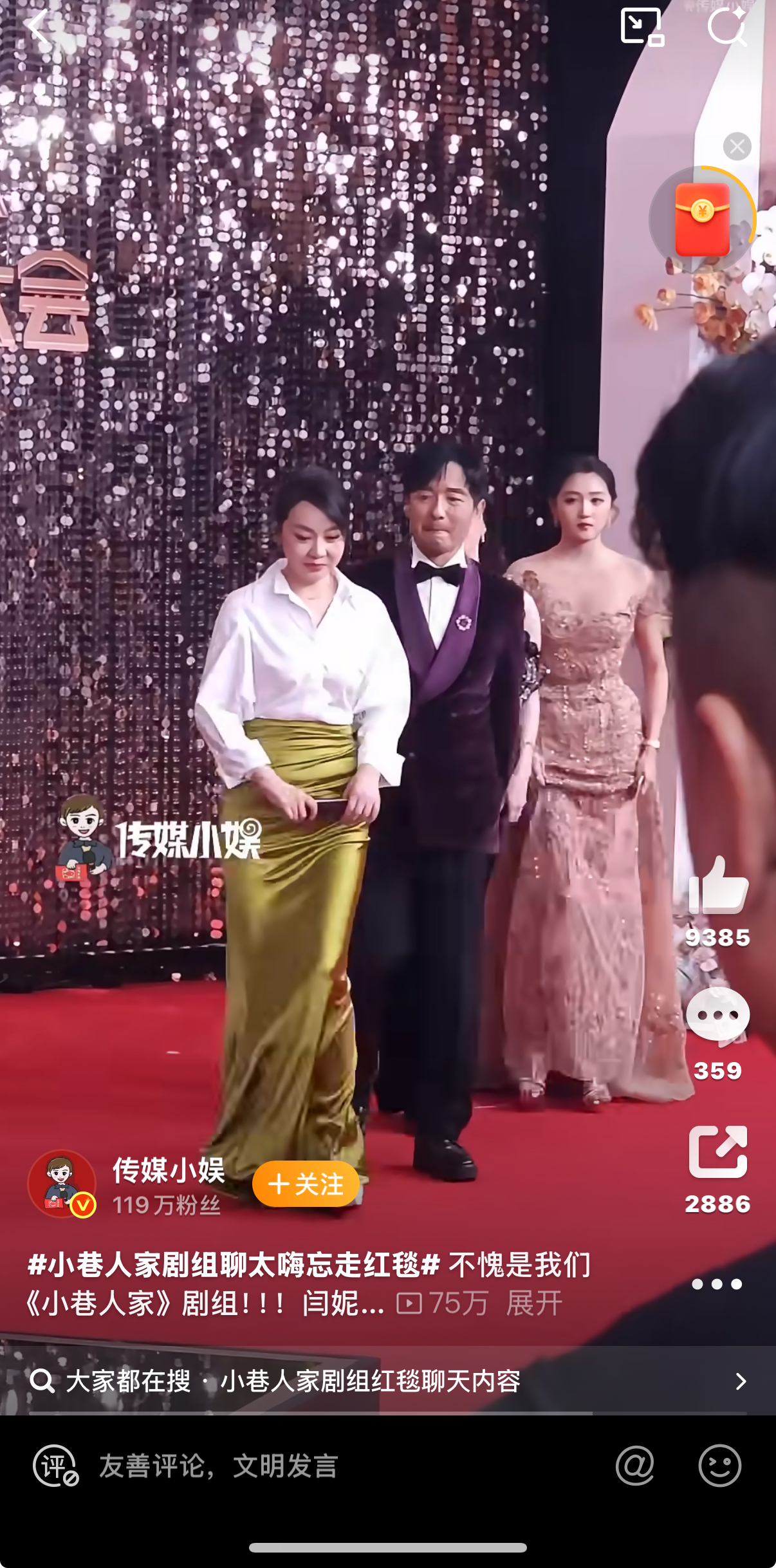闫妮、蒋欣、郭晓东和关晓彤光顾着唠嗑了,正事忘了。他们是《小巷人家》剧组演员,可能好久没聚了,刚一聚到一起就开始聊天,主持人叫了几遍没听见,后来好不容易走上了红毯。全剧组“微醺”,好可爱哈哈哈。