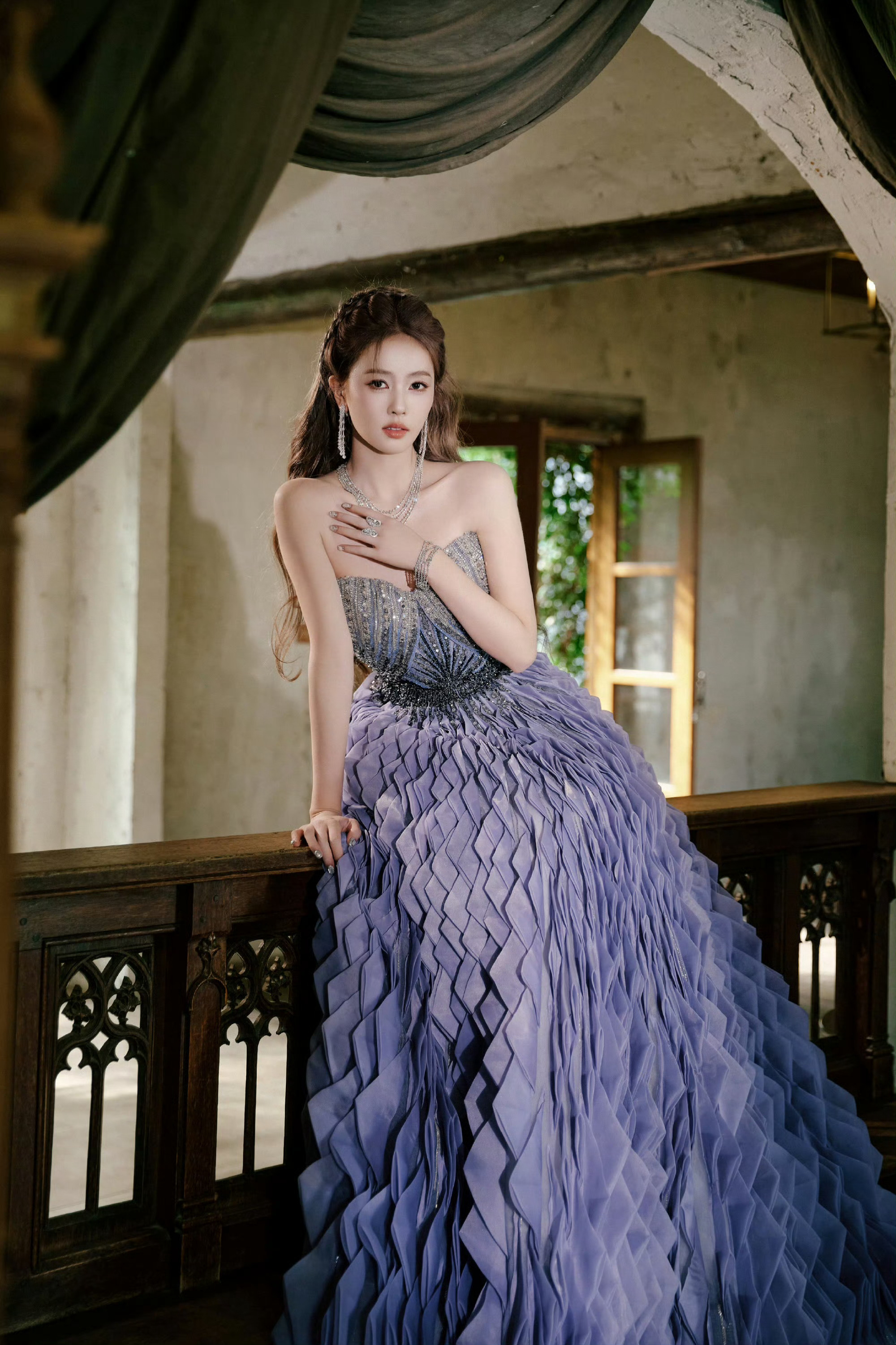 今晚第二套Look揭晓!身穿 Tony Ward 2025春夏定制系列礼服裙亮相,De Beers珠宝点缀,裙摆层叠的紫色浪漫,璀璨明媚的公主白梦妍优雅登场🪻🫧 微博视界大会红毯