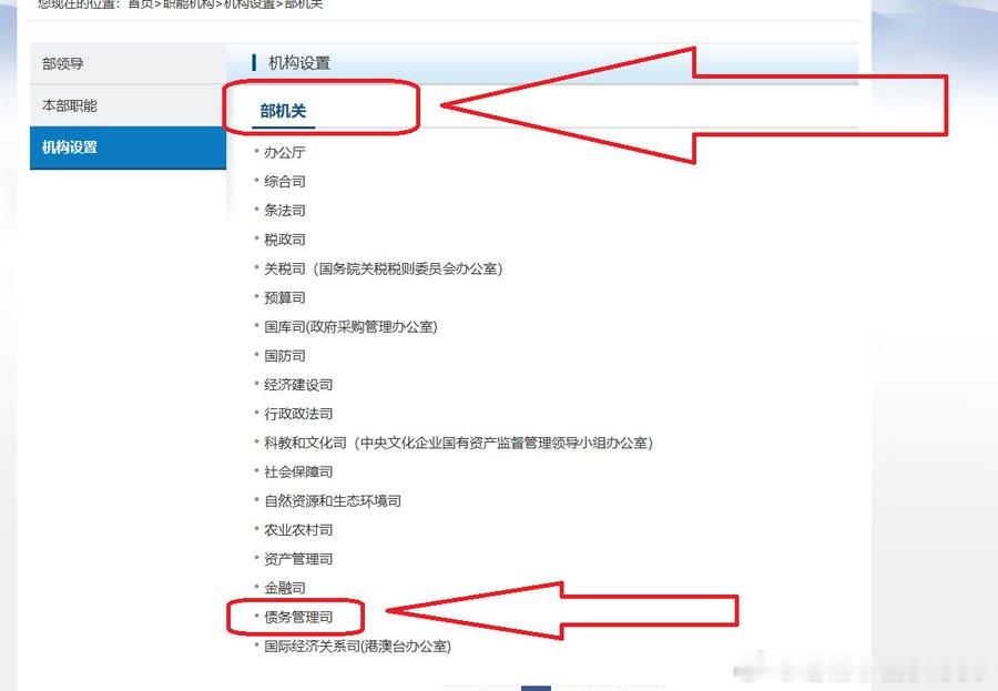 近日,中国财政部官网“机构设置”栏目更新信息,财政部债务管理司已列入“部机关”列表。