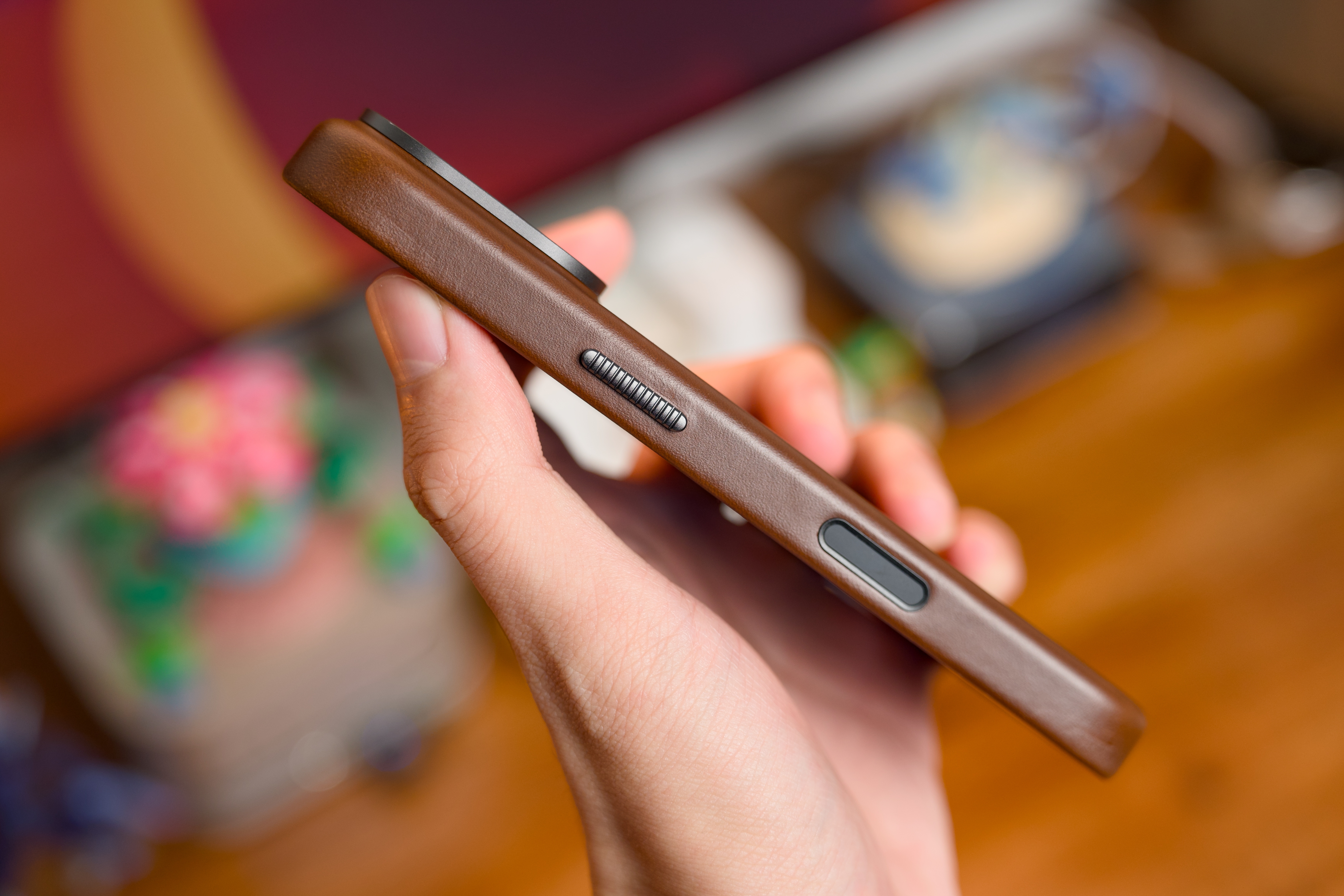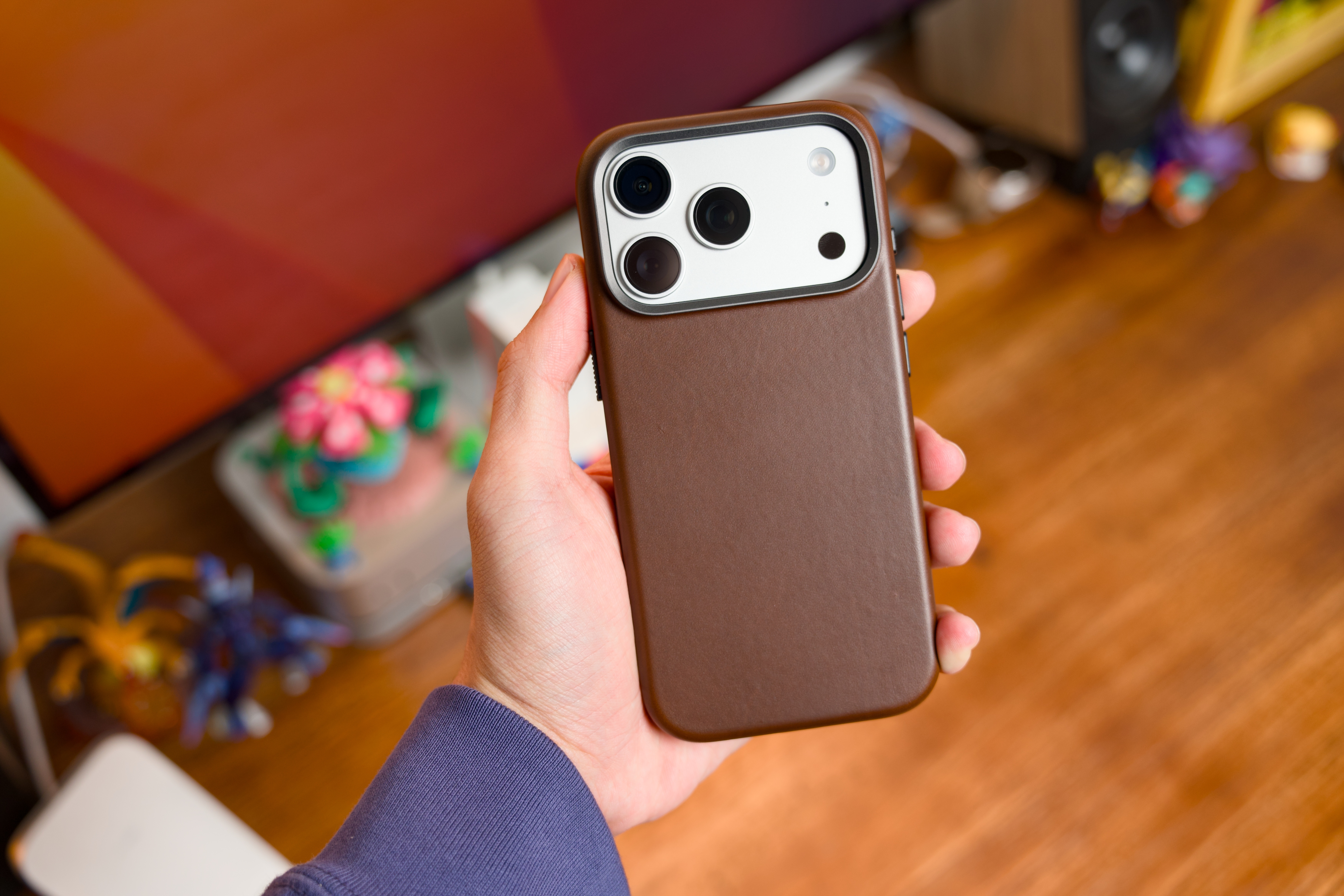 很久之前就跟我说想搞iPhone真皮壳,现在终于看到货了,听说还是某大厂代工的真皮壳[奶牛猫]真皮和素皮最大的区别就是会有各种随机性纹理,因为是真的动物皮肤,触感也比较细腻,之前提议让老莱搞点别的颜色,他就喜欢深棕色[皱眉]168能买到这种质量的真皮iPhone磁吸壳,还有啥可说的呢[点赞]
