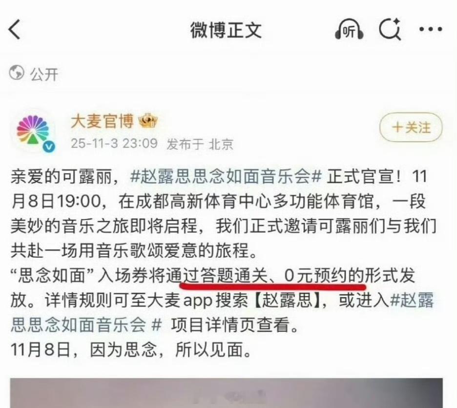卧槽。赵露思音乐会门票免费,真宠粉啊…