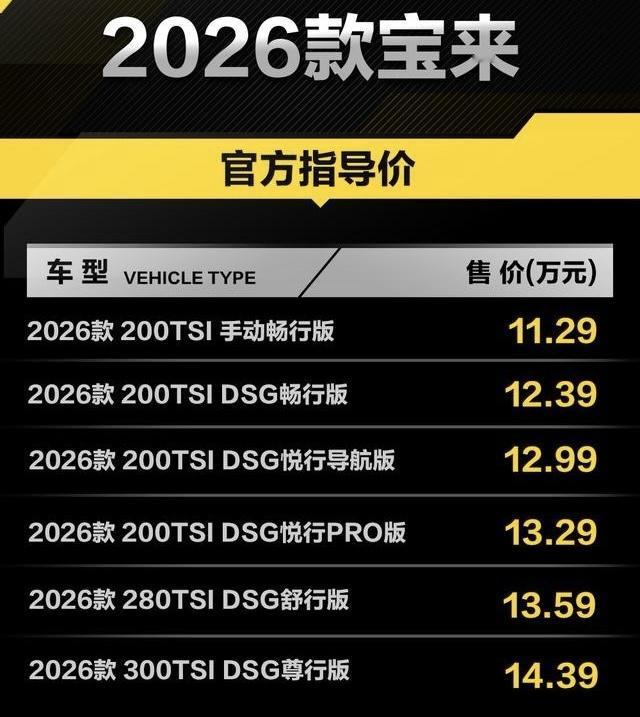 2026款大众宝来上市了,11.29-14.39万元的指导价,我想说,怎么敢定这