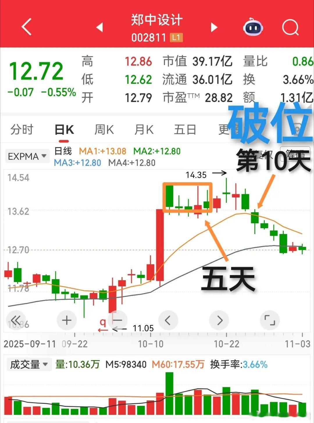 这里又谈到空中加油形态,出现空中加油并不是说就必然会涨,也有失败案例。我之前将空中加油形态的时间设定为五日之内不涨就走人,后来由于出现较多在八天后涨起来的票,于是我又将空中加油时间做了相应调整,延后了三天。不管怎么设定时间,有一点必须清楚,横盘太久,并不是好事,在横盘末端没有明确信号不能轻易上车。