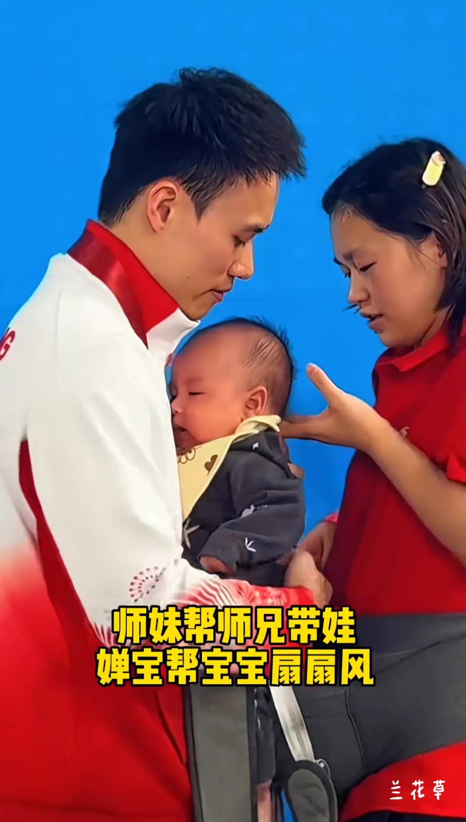 18岁的全红婵爱心带娃。 婵宝帮师兄谢思埸带孩子,动作娴熟有爱。 当她把娃儿转交给娃爸时,她托头的动作很细心,很有爱。 婵宝走到哪里,哪里就是气场。祝福婵宝!