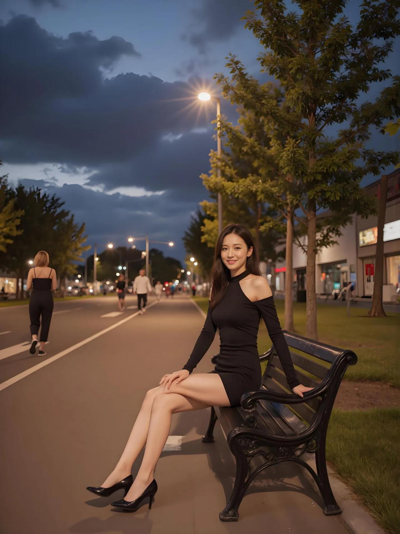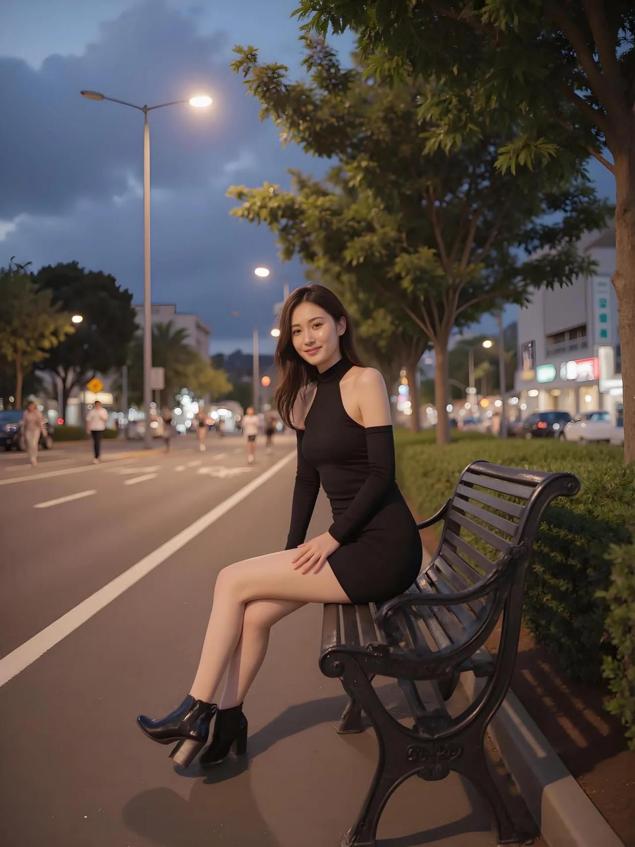 暮色漫过城市,黑裙勾勒出岁月沉淀的曲线——四十岁的妩媚,是时光酿成的诗,无需言语