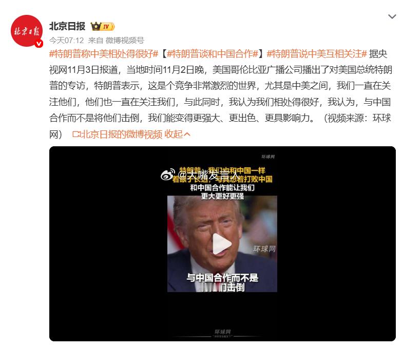 特朗普吹牛遭记者尴尬打断,特朗普说中美互相关注 ,热点观点