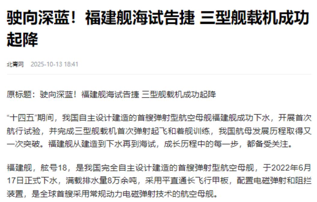 为什么说福建舰不会再有第二艘了?福建舰的交付时间一拖再拖,不是技术不行,是中国海军在憋下一代航母的大招! 外界总爱盯着交付日期说三道四,却没看透如今的航母赛道早就变了玩法,不再是比谁造得多,而是比谁的技术能甩对手一大截。 美军福特级喊了十几年 “新一代航母”,2017 年就匆匆服役,结果咋样?电磁弹射系统就是个中看不中用的 “绣花枕头”,平均每 400 次弹射就崩一次,直到现在都没法正经投入实战。 福建舰从一开始就没踩这个坑。它用的中压直流技术,比福特级的中压交流靠谱太多,上千次弹射试验都稳稳当当。 但中国海军哪会满足于 “比美国靠谱”?这才是福建舰 “慢下来” 的核心原因 , 它根本不是来量产的,而是来当 “技术小白鼠” 的,要把所有未来航母的新东西,都在这一艘上试到完美。 最初福建舰的弹射系统,本来是按歼 - 15T 的标准设计的。可这边舰体还在调试,歼 - 35 隐身舰载机已经横空出世,空警 - 600 固定翼预警机也顺利定型。 这哪能凑合用?西太平洋的制空权之争就在眼前,美军都把 F-35C 搬上尼米兹级了,咱们的五代机要是不能满油满弹起飞,将来远洋对峙时可不占优。 工程师们干脆推倒重来,不仅把弹射功率的调节范围大幅拉大,还加了个 “动态能量补偿” 黑科技。这玩意儿是真厉害,能跟着舰载机重量、甲板风速,甚至海浪起伏实时调劲。 有了它,歼 - 35 能多带 12% 的燃油,作战半径直接多飞 200 公里;空警 - 600 起飞时受力更均匀,雷达故障都少了三成。就这一套优化,光调试就花了大半年,但这可是为下一代航母的 “智能弹射” 打基础,再久都值 还有电力系统,之前西方专家还嘲笑 “常规动力带不动电磁弹射”,说咱们续航差、没法持续作战。结果咱们的研发团队直接用实力打脸,搞出了 “分时复用储能模块”。 打仗时,能把 30% 的舰体动力临时调去给弹射系统,90 秒内就能让 4 架战机接连起飞;不打仗时,又自动切回动力模式,航母续航还能多 15%。这一下,打破岛链封锁、远洋部署的底气直接拉满 福建舰上的试验,远不止弹射和电力。现在海战早就变了样,光靠有人机根本不够,无人机集群才是未来趋势。攻击 - 11 舰载无人机的缩小版,已经在福建舰的弹射轨道上练了几百次。 这玩意隐身性能顶呱呱,能带 8 枚精确制导导弹,跟歼 - 35 组队就能形成 “隐身突击群”,专门盯着美军航母的预警机和反潜直升机打。 这种 “有人机 + 无人机” 的混合打法,正是为了应对未来 “不接触海战”,让航母从单纯的 “海上机场”,变成真正的 “立体作战中枢”。 更关键的是,福建舰还带火了一整条军工产业链。造航母最考验的特种钢材,现在咱们的甲板钢屈服强度已经冲到 980MPa,妥妥的全球顶尖水平;之前依赖进口的弹射专用芯片,现在也实现了 100% 国产化; 就连舰载机调度,都用上了 AI 智能算法,比传统人工调度快 40%。这些实打实的进步,可不是造第二艘福建舰能比的,它们是下一代核动力航母量产的 “通行证”,是真正的核心底气。 再看中美航母的比拼,根本不是数量多少的较量,而是技术代差的博弈。福特级受限于技术路线选错,加上美国产业链空心化,出了故障都不好修;咱们福建舰的中压直流技术,不仅可靠性拉满,维护成本还比福特级低一半。 福特级现在还靠人工调度舰载机,咱们都实现 80% 智能调度了。这些优势,都在福建舰上一遍遍实战验证,等下一代航母出来,直接就能实现 “弯道超车”。 所以说,福建舰绝对不会有第二艘。它是中国航母的 “过渡舰”,更是 “敲门砖”—用它的每一次调试,打通从常规动力到核动力的关键链路;用它的每一次优化,攒下超越美国的技术资本。 等福建舰把所有新技术都试成熟,下一代航母带着核动力、AI 中枢、定向能武器预留接口亮相时,必然是碾压级的存在。