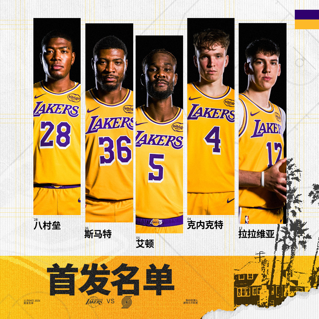 「湖人vs开拓者|首发名单」八村垒马库斯·斯马特克内克特拉拉维亚