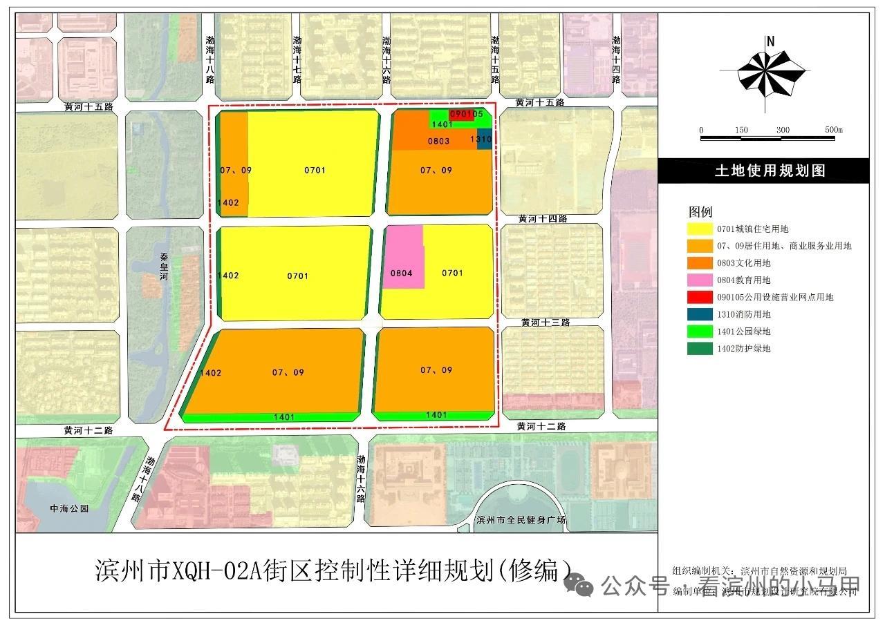 原滨州彭李“新庄工业园”规划有变动 近日,山东滨州市自然资源和规划局官网公布《滨州市XQH-02A街区控制性详细规划(修编)公示和意见征集》(图一) 内容: 规划范围:北至黄河十五路,南至黄河十二路,西至渤海十八路,东至渤海十六路。规划面积133.02公顷。 规划目标:功能完善,环境优美的宜居街区。城乡用地:用地总面积约133.02公顷,均为城镇建设用地。城镇建设用地主要包括居住用地、公共管理与公共服务用地、商业服务业用地、交通运输用地、公用设施用地、绿地与开敞空间用地等6个一级地类,8个二级地类,并细化至最小类。 城市设计引导: (一)景观轴带:突出渤海十八路、黄河十二路、黄河十五路三条城市轴线的景观串联作用,实现功能和景观的有序分布。 (二)景观风貌区:规划区建筑色彩参照《滨州市建筑外立面色彩应用指导手册》执行。居住风貌区应体现安宁恬静、舒适宜人的总体意象。非居住建筑应体现现代、时尚的形象。 (三)城市天际线:重点控制沿渤海十八路、黄河十二路、黄河十五路、渤海十六路城市天际线,控制一定范围内背景建筑高度,丰富城市景观。与此前规划比较,修编主要对原“新庄工业园”地块(即黄14、15之间和渤15、16之间)的“城镇住宅用地”和“文化用地”的位置有改变。另外,黄14渤16东南角的“教育用地”具体建什么学校,仍是未知数。 来源 综合滨州市自然资源和规划局