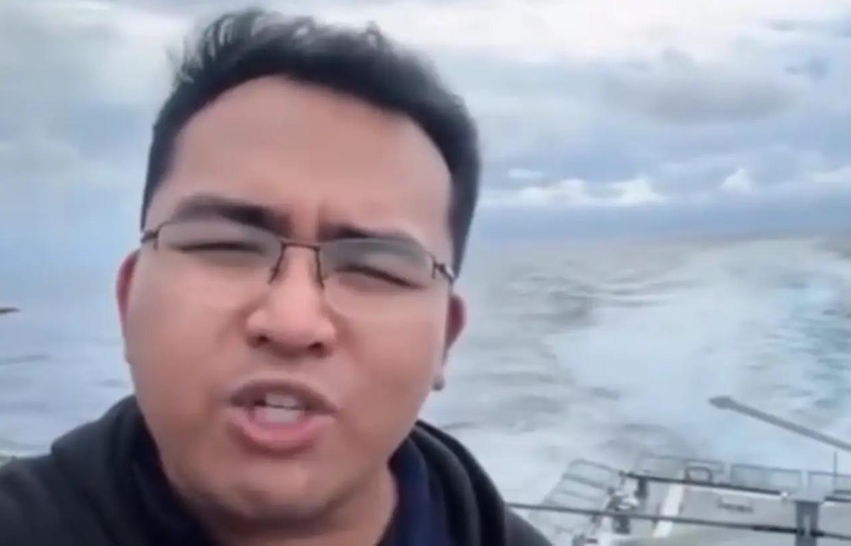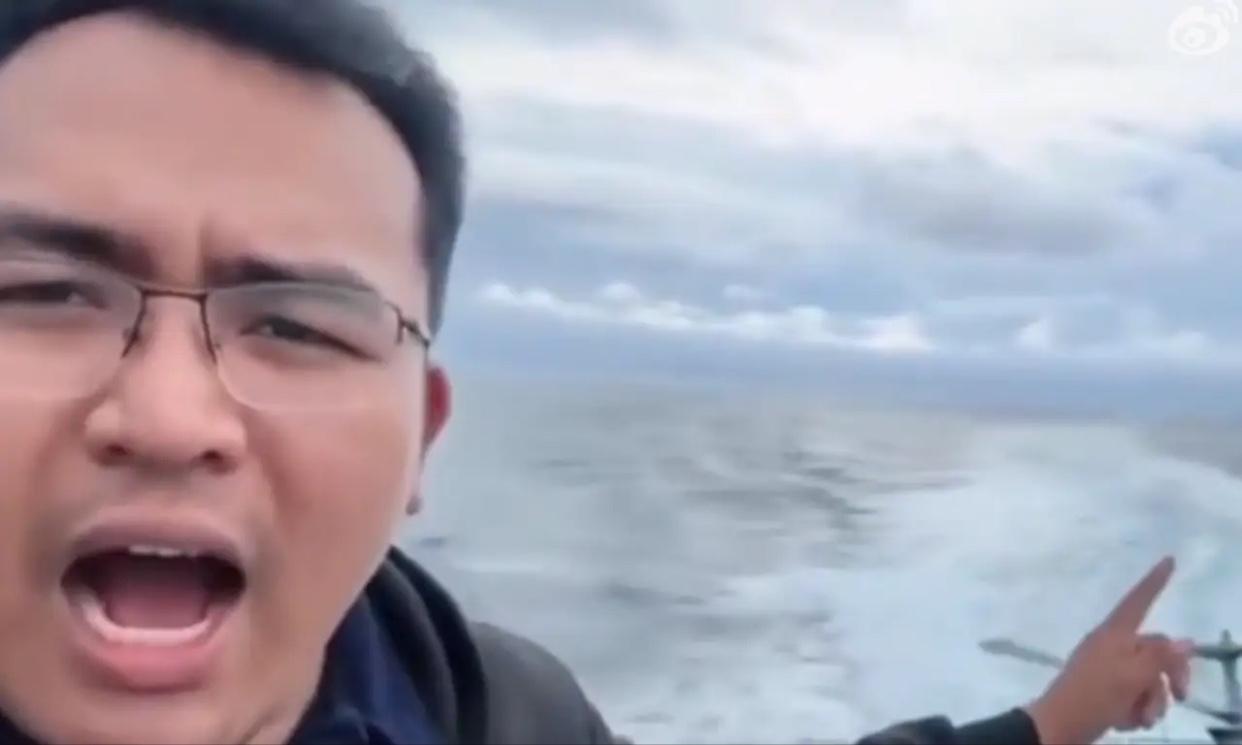 052D导弹驱逐舰现场围观美国、澳大利亚、新西兰、菲律宾四国组织的海上联合演习。 只见菲律宾记者坐不住了,破防大骂中方军舰在周围游戈,有干扰、刺探军情的嫌疑。