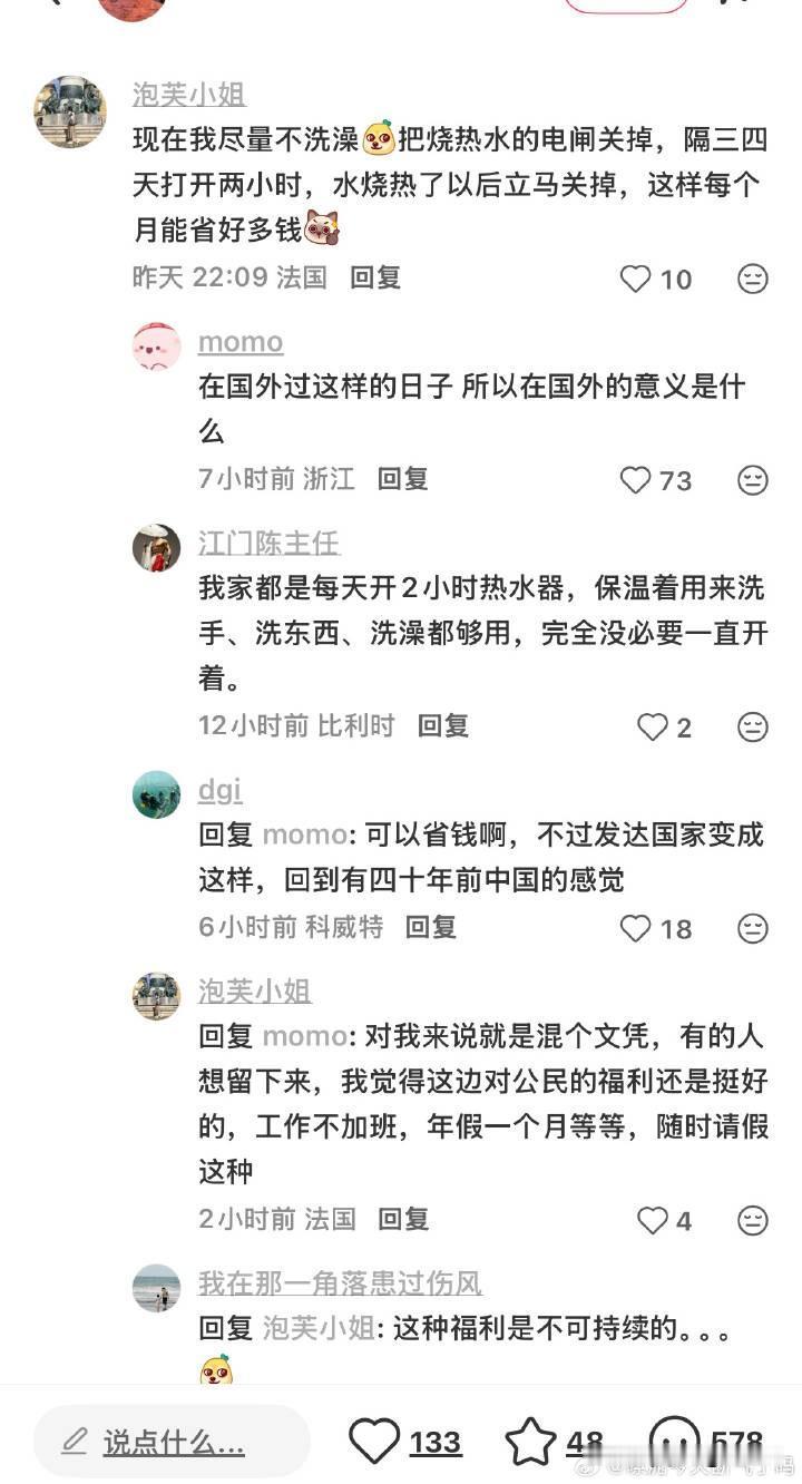 等欧洲被打回原形,回到真实历史低位的时候,还有高福利吗?怕不是要一周工作70小时了。 哈哈哈,再过两年,一个法国人月薪4000欧,交税1500欧,租个单间1000欧,水电费300欧,保险300欧,剩下的可以好好买点,不是还剩不少嘛[偷笑]法国电费高涨 法国 欧盟工资 欧洲福利危机