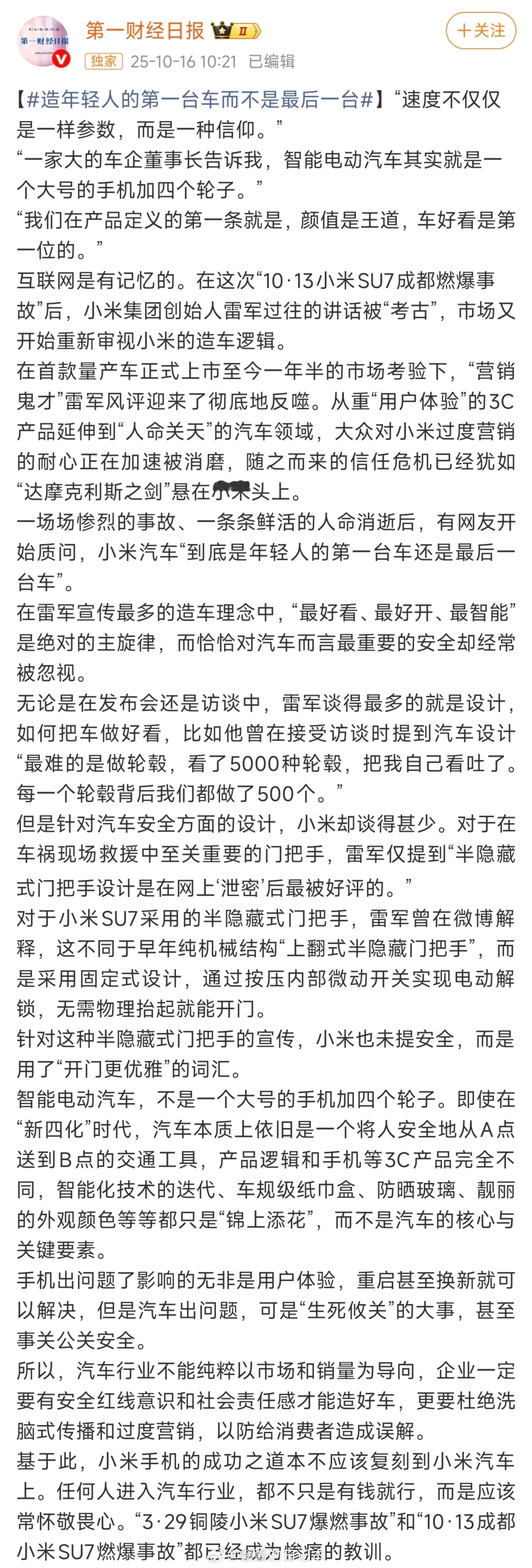 让小米汽车这样的公司能把所有资源投入到研发和生产上,而不是浪费在应对谣言上,这才是对中国创新最大的支持!
