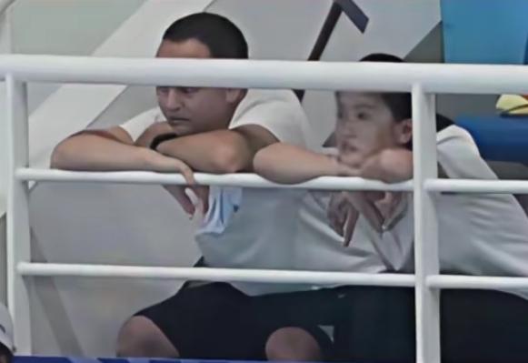 让这个美女给惊艳到了,她优雅地端坐在观看台上,美丽又大方。她趴在栏杆,把自己缩小在一个横框里,像一个调皮的小学生。有人说,她是特意来看徒弟全红婵决赛的,应该好长时间没跟徒弟在一起了,她趴在栏杆上的神情该有多专注,也许,全红婵的每一个动作都成为她脑海里的数据,就等着有一天能让她发挥出更好的成绩来。