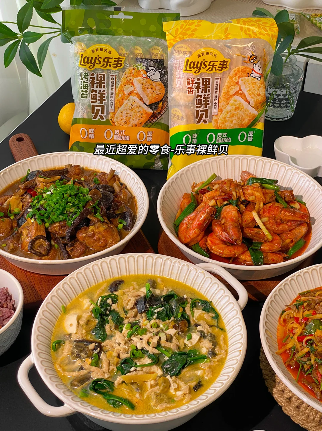 一个人在厨房忙活了 1 个多小时,菜还没齐呢,肚子先饿了🤷,还好提前把乐事裸鲜贝放旁边了,餐前垫几片正合适。这种即时吃的零食,我一直只认配料表干净的,吃着才踏实!