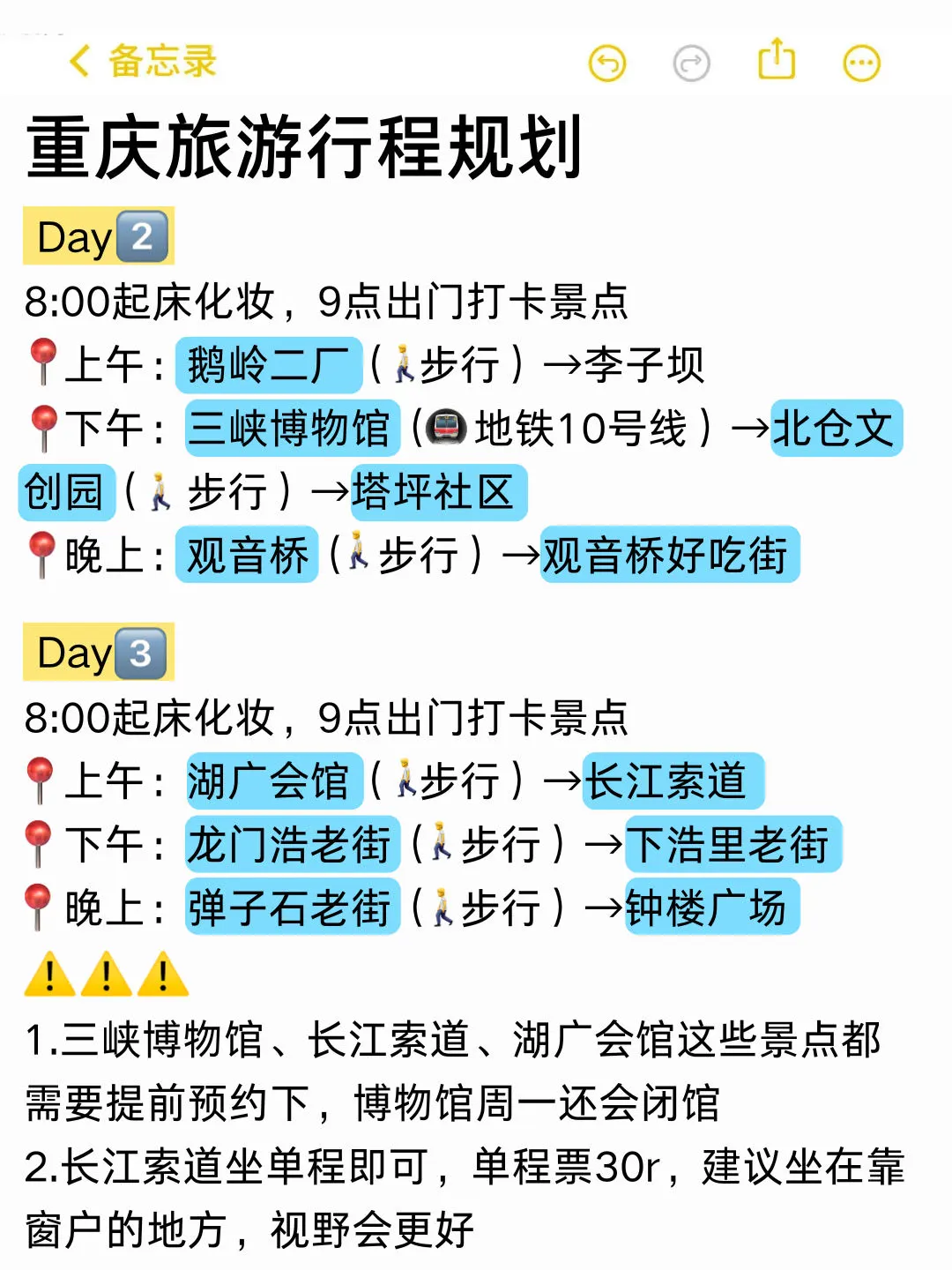 ✅重庆3日行程