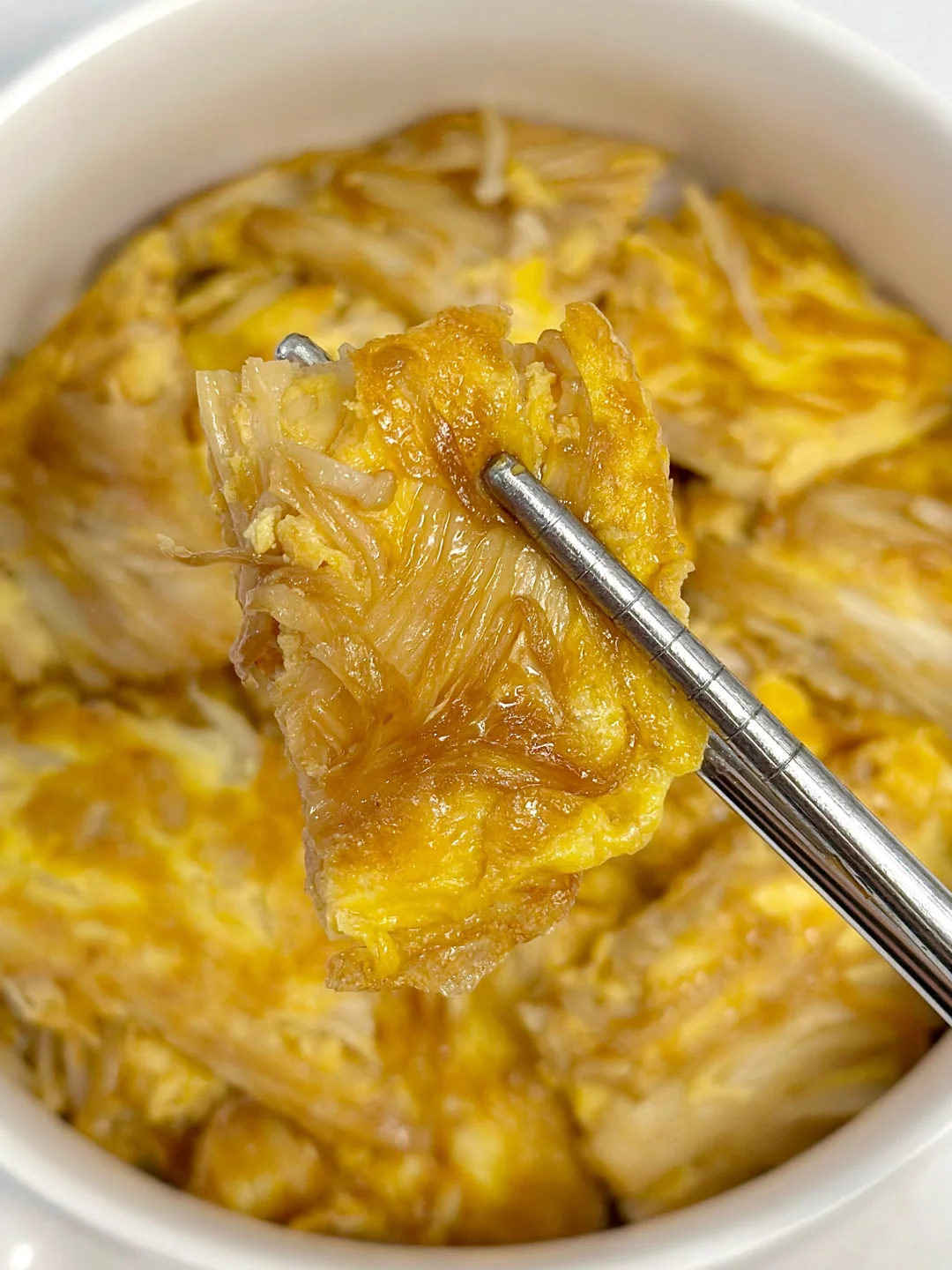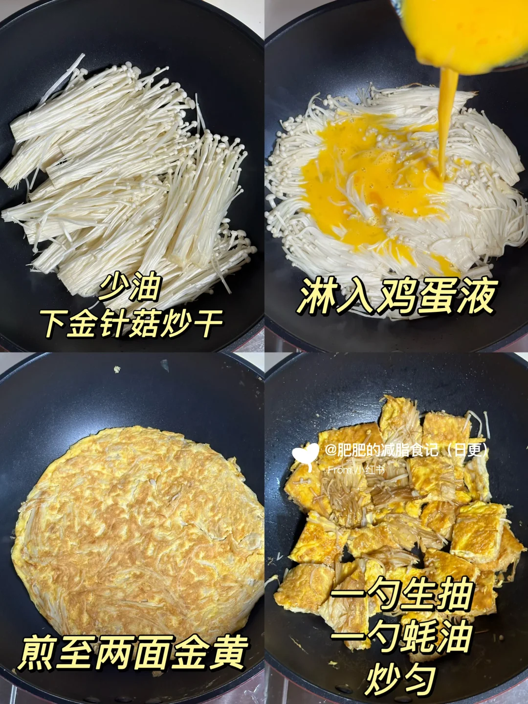 姐妹们快去试试这个金针菇蛋饼!!巨香巨好吃!口感好像烤冷面!一口下去真的绝了!!低卡饱腹!巨好吃! 做法如图!你们快去试试!!