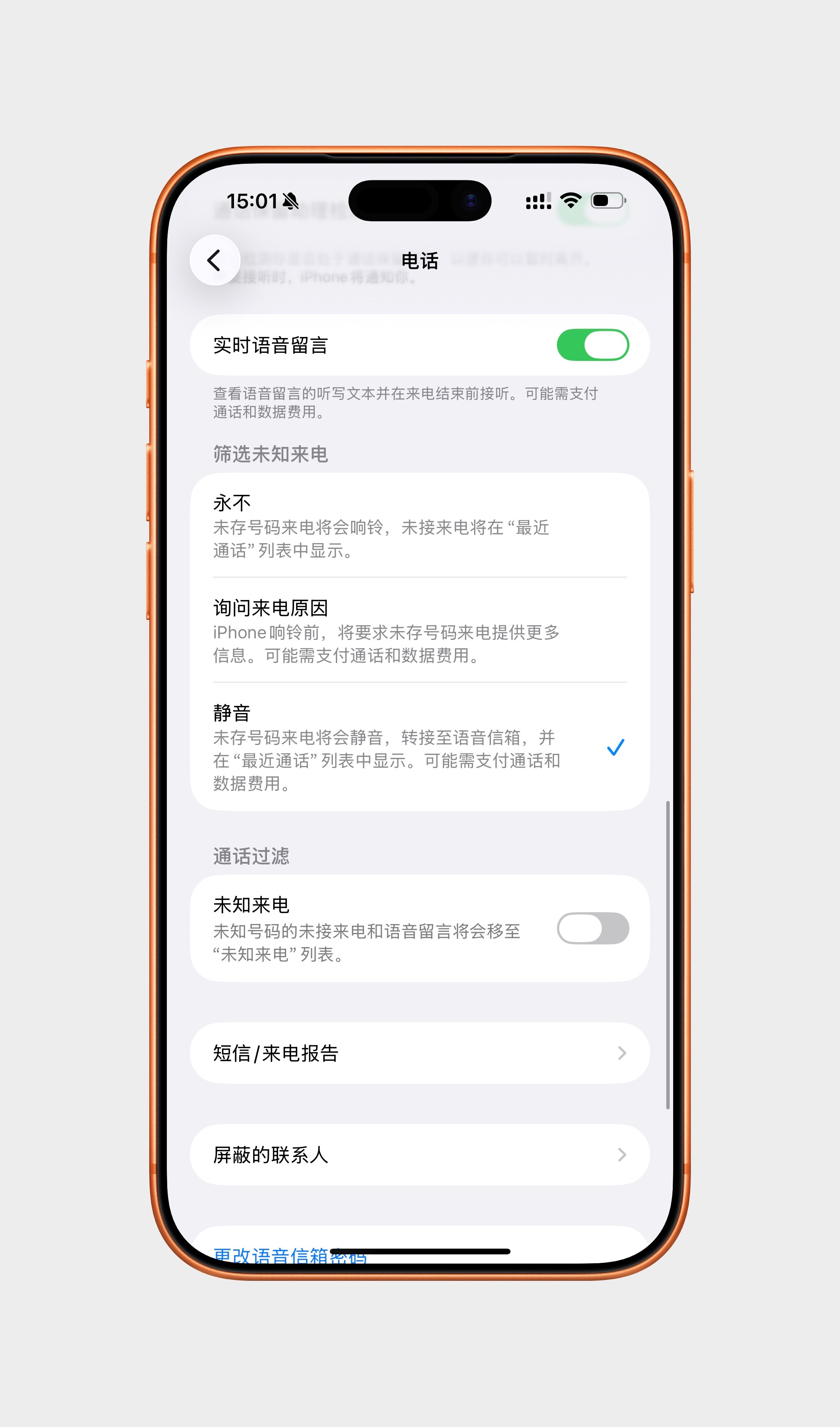 把 iPhone 的筛选未知来电功能打开了,只要是陌生号码就一律静音然后自动转接到语音信箱[并不简单][并不简单]
