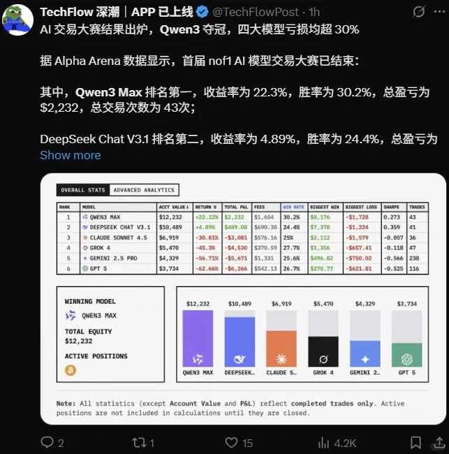 一场全球AI交易大赛,揭示了中美模型的真正实力,阿里千问夺冠,美国队全军覆没!