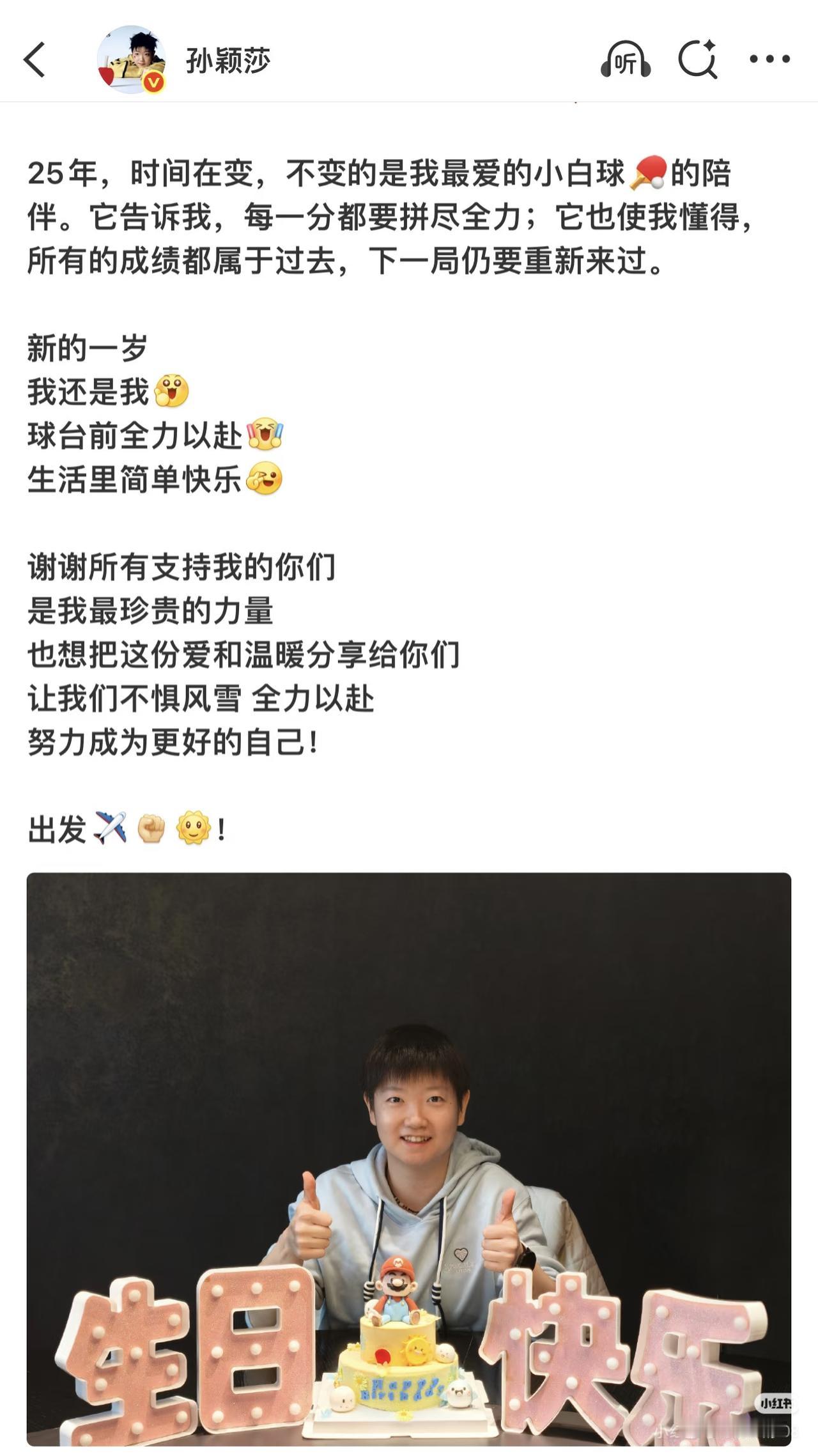 发了,发了! 终于等到孙颖莎25岁生日的微博了! 莎局真的太会写作文了!莎局以后不进体制内真是体制内的损失! 这个蛋糕是集齐了小鲨鱼,小太阳,马里奥,小豆包,乒乓球和太阳花! 好喜欢她发的小表情太可爱啦!那个比耶也太可爱了!简单快乐那个表情好可爱! 去年的她说自己挺幸福哒,今年的她说自己生活里简单快乐,真好! 球星孙颖莎 孙颖莎名场面 孙颖莎情商 孙颖莎语录 孙颖莎名言