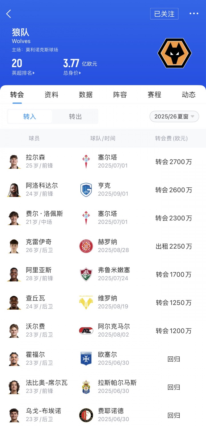 据称,在上赛季中途接手成功带队保级后,狼队主席施瑜决定按照佩雷拉的意愿重组足球运营部门。