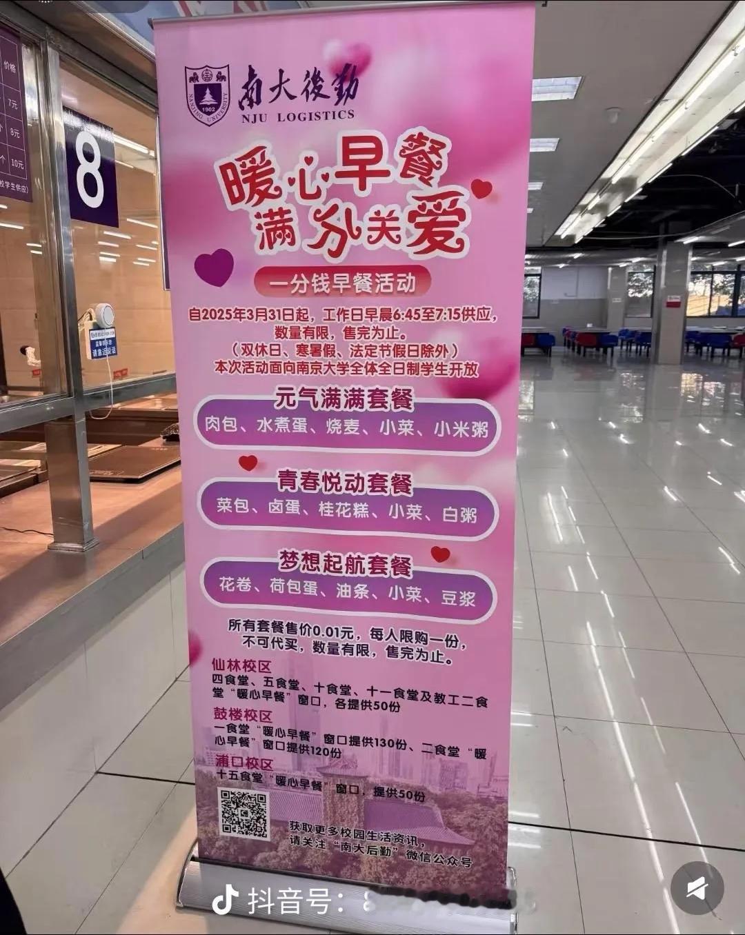 不查不知道 南京大学除了999帝王蟹套餐还有 一分钱早餐,和7元学子套餐 都是食堂做出的创新尝试 有不少人认为学校还是专心搞教书育人,市场化气息不该这么浓 也有校友表示反对,我们不会因为一只帝王蟹就否定食堂的努力,也不会因为1分钱早餐就盲目吹捧,但学校愿意为我们的需求调整,这就够了 在南大能吃到一荤一素+免费汤+主食管饱!比如砂锅面里的三鲜锅,11块钱能堆成小山;番茄鱼浇饭15元,汤汁都能拌两碗饭;更别说1.5元的阳春面和蛋炒饭,深夜赶论文时来一碗,暖胃又暖心 看这菜谱,你觉得南大食堂的定价合理吗