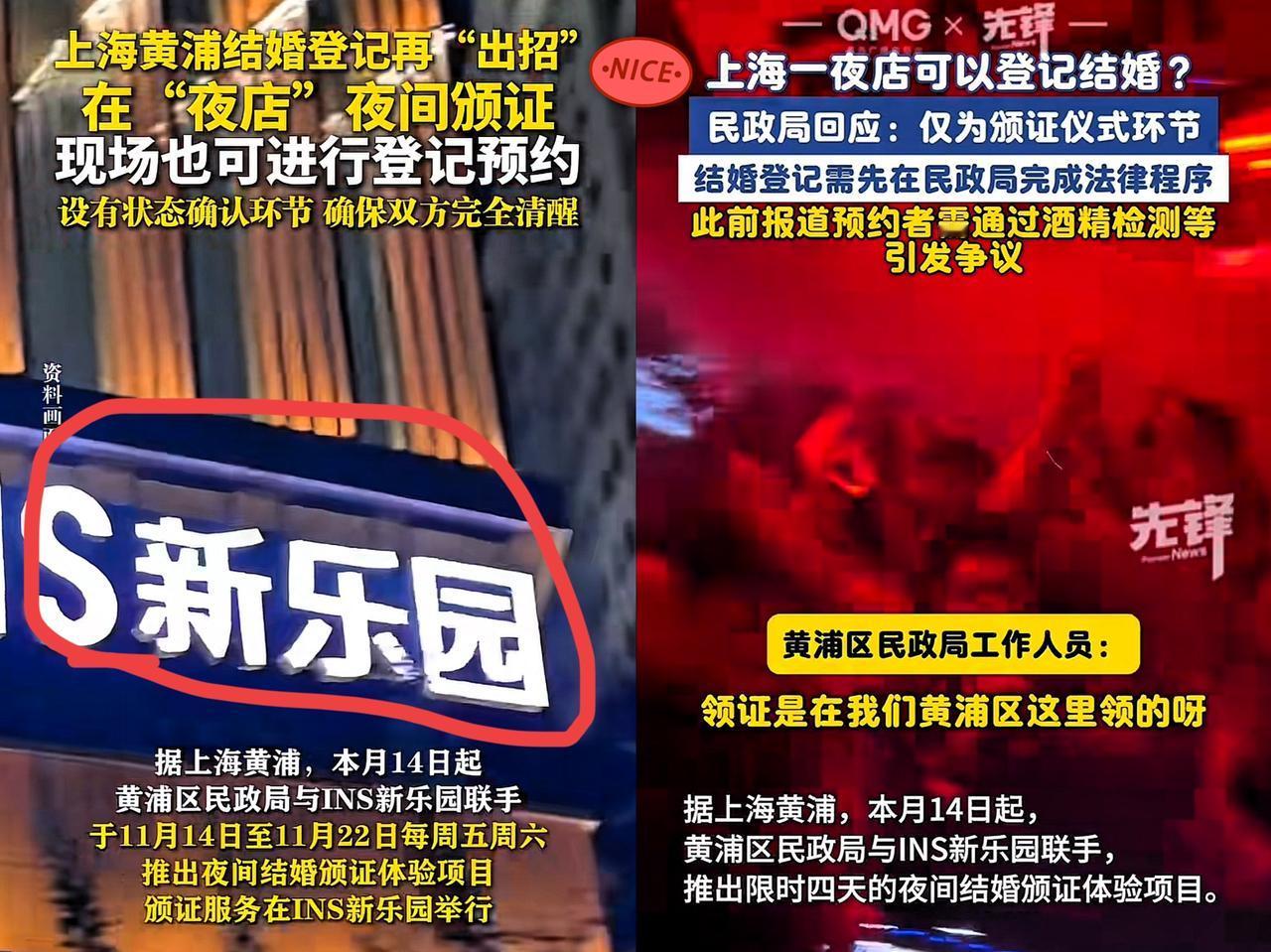 结婚取消户口本,我忍了 离婚还有冷静期,我也忍了 但上海把民政局搬去夜店? 一开始我真觉得疯了,这不是撺掇年轻人冲动结婚吗? 结果仔细一看才发现是误会,根本不是在夜店领证,而是民政局把颁证仪式放那儿了。 得先在民政局办好正规手续,想换个仪式感才去夜店,现场还有状态确认环节保证清醒 说白了就是给婚姻加了层年轻人喜欢的“浪漫滤镜”,毕竟现在九成年轻人都想要法律保障,同时又爱搞点个性化仪式! 其实这招挺聪明的,既没丢婚姻的严肃性,又接住了年轻人对仪式感的需求。比起担心氛围冲昏头,倒不如说这是在帮年轻人重视领证这件事! 那些吐槽“派对式结婚”的,是不是有点过度焦虑了?你们觉得这种仪式创新靠谱吗?