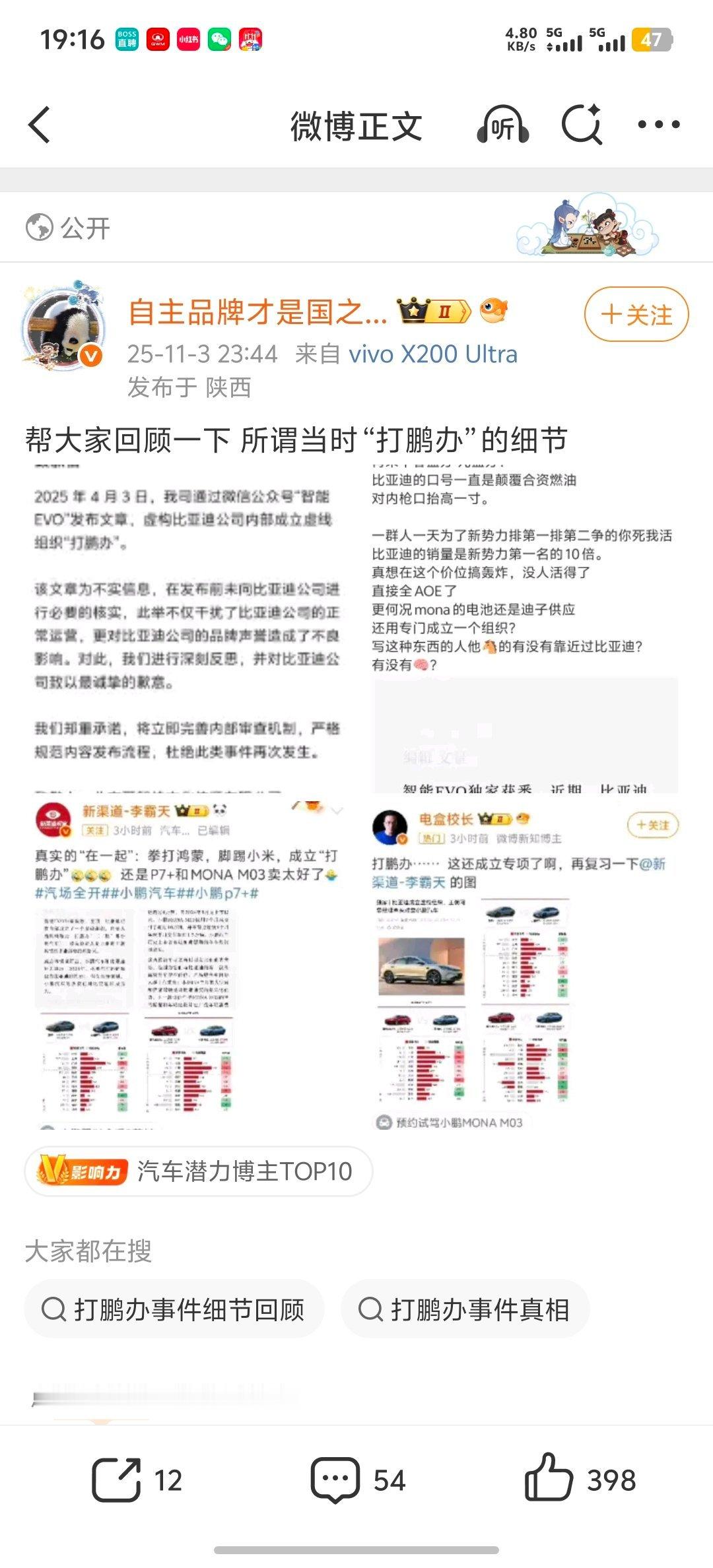 旗下两个账号 和 两个账号没有经过严格的审核就转发了不实信息,也没有向比亚迪公司进行核实,为此给比亚迪造成了不良影响,我们深刻反思并对比亚迪公司致以最诚挚的道歉…