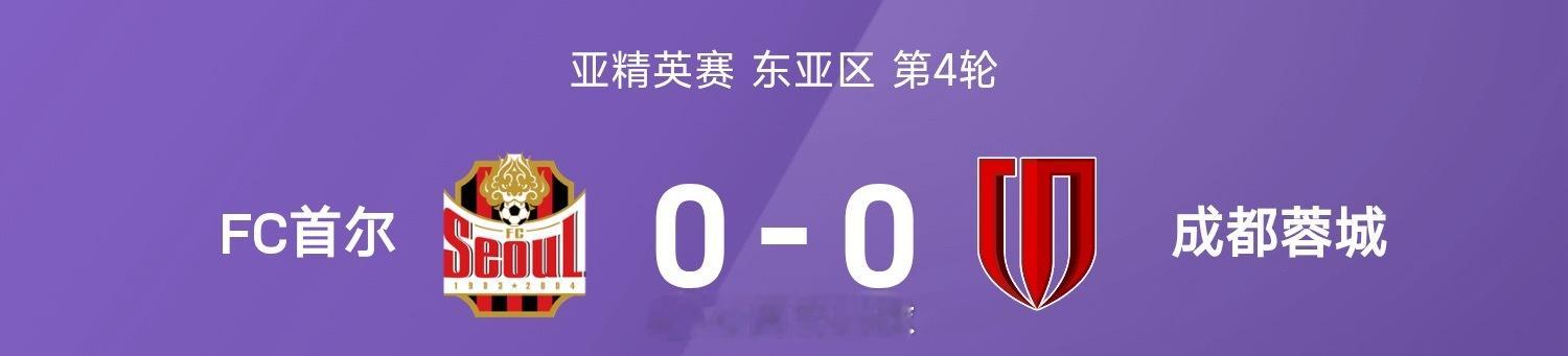 25/26赛季亚精英赛东亚区第4轮,FC首尔0-0互交白卷闷平成都蓉城。上半场罗慕洛受伤离场,林加德远射造险,下半场费利佩头球顶偏,随后费利佩破门因犯规在先被吹无效。成都蓉城
